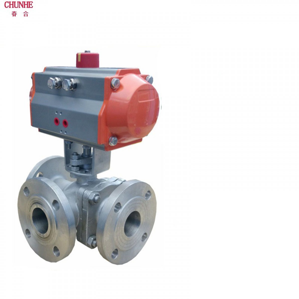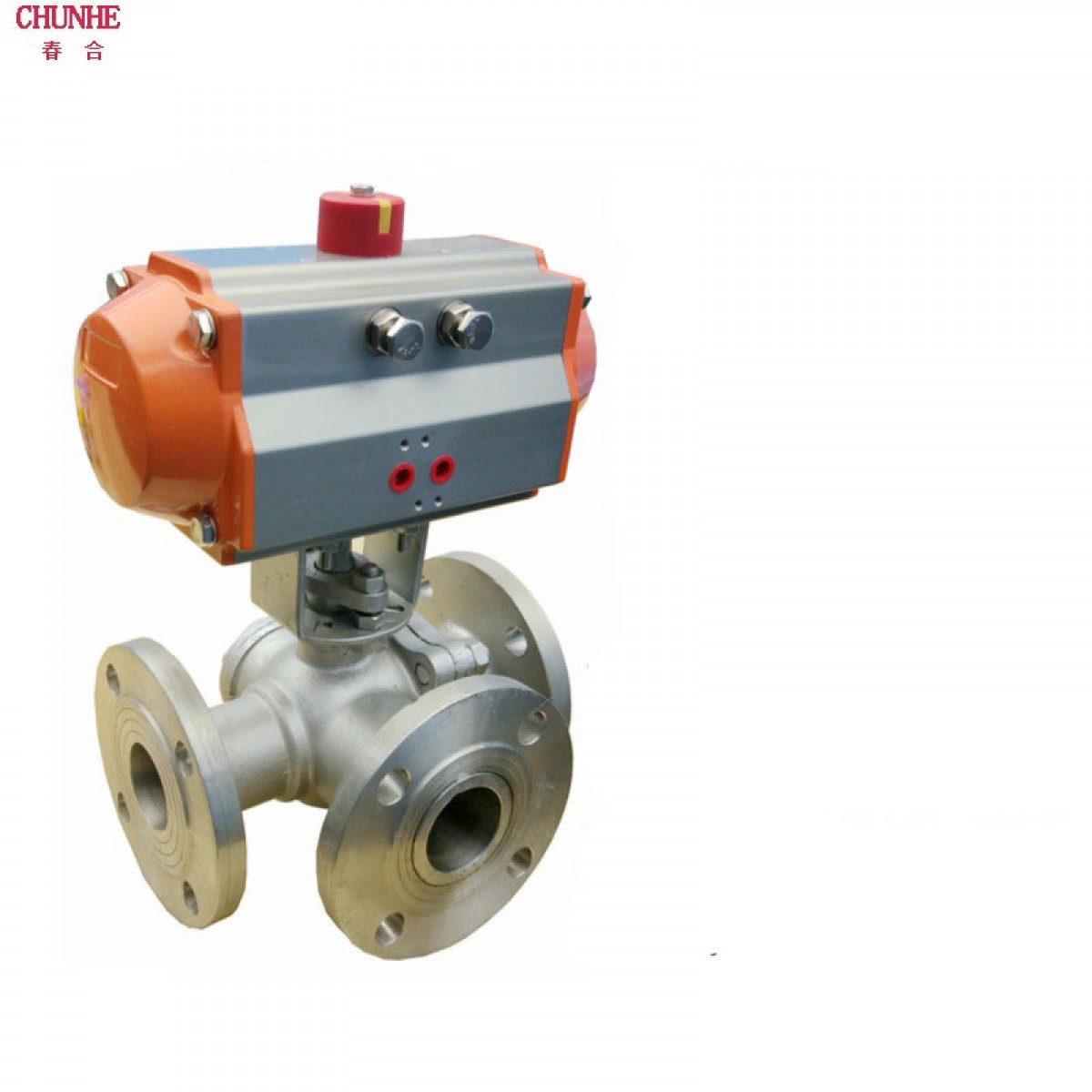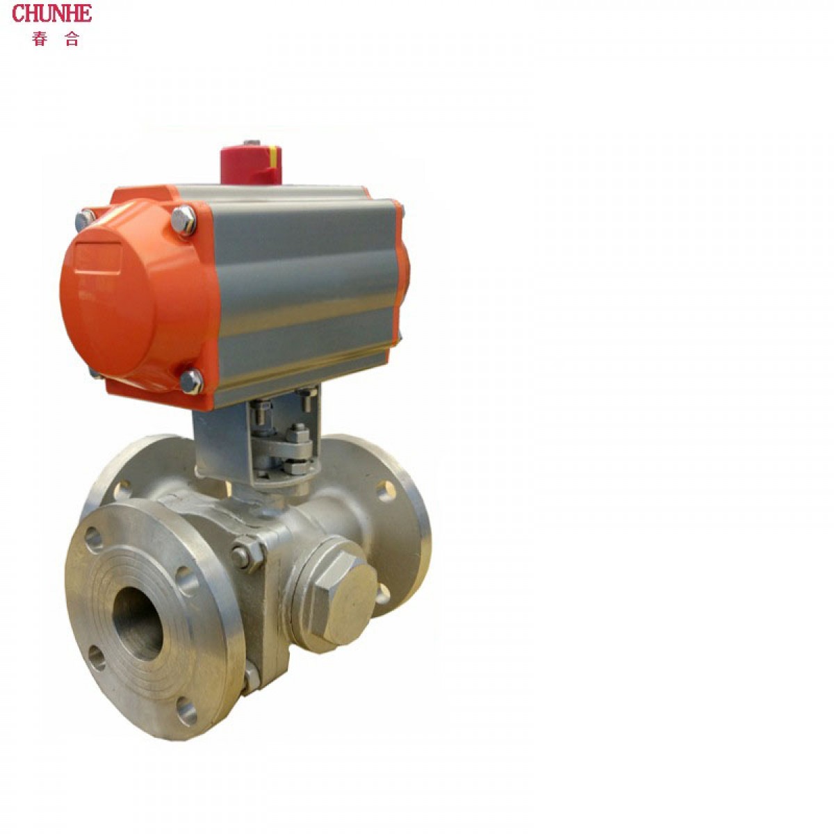 商品名称:春合 不锈钢304法兰连接T型三通气动球阀AT气动头 Q645F-16P
