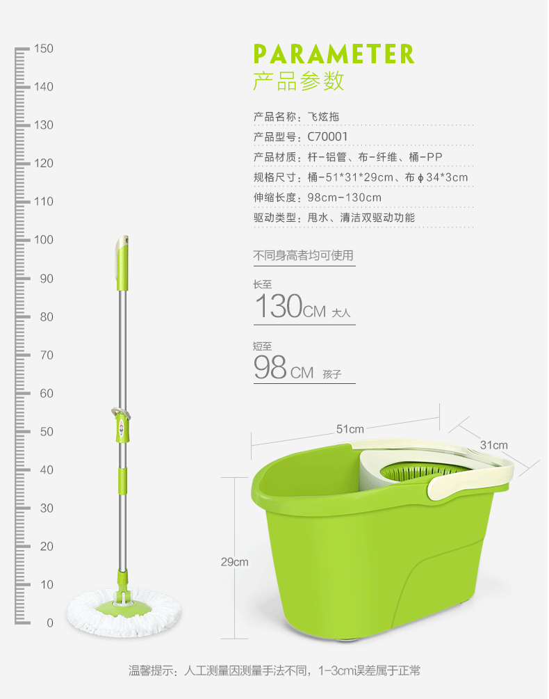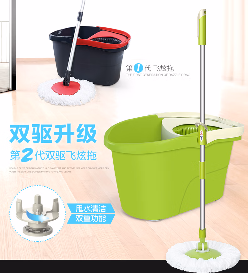商品名称:茶花-C70001-超炫拖·手压式双驱动旋转拖把-单位:把