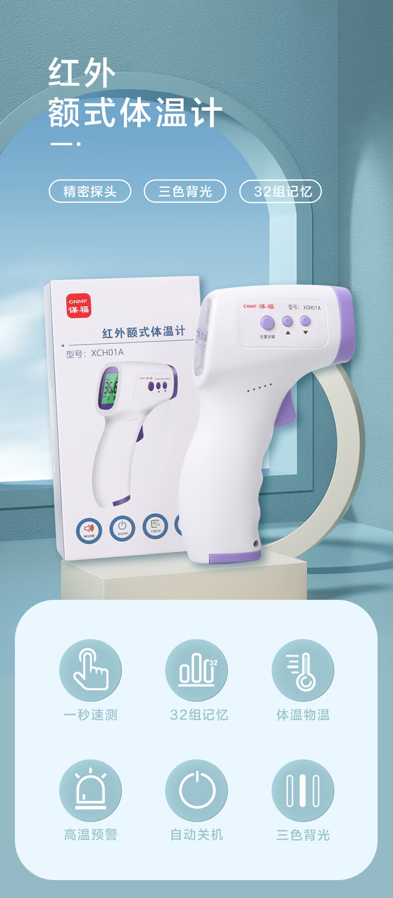 商品名称:谋福(CNMF)174 体温枪红外测温仪非接触式便携外贸电子体温计手持式额温枪【电子体温计(中文)】单位:个