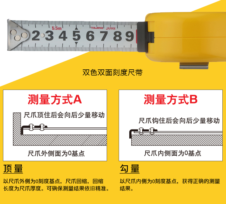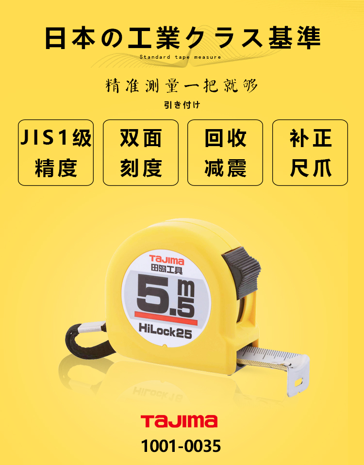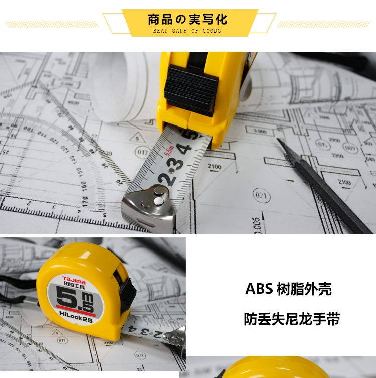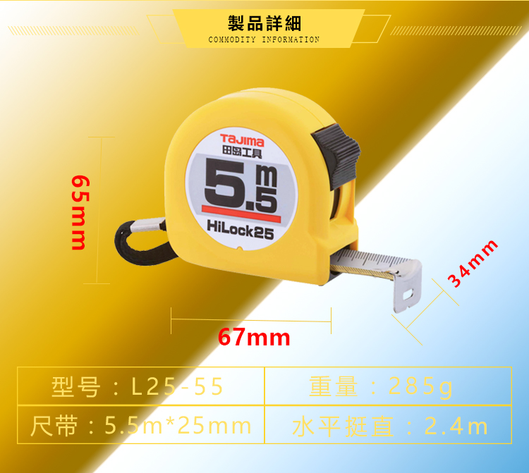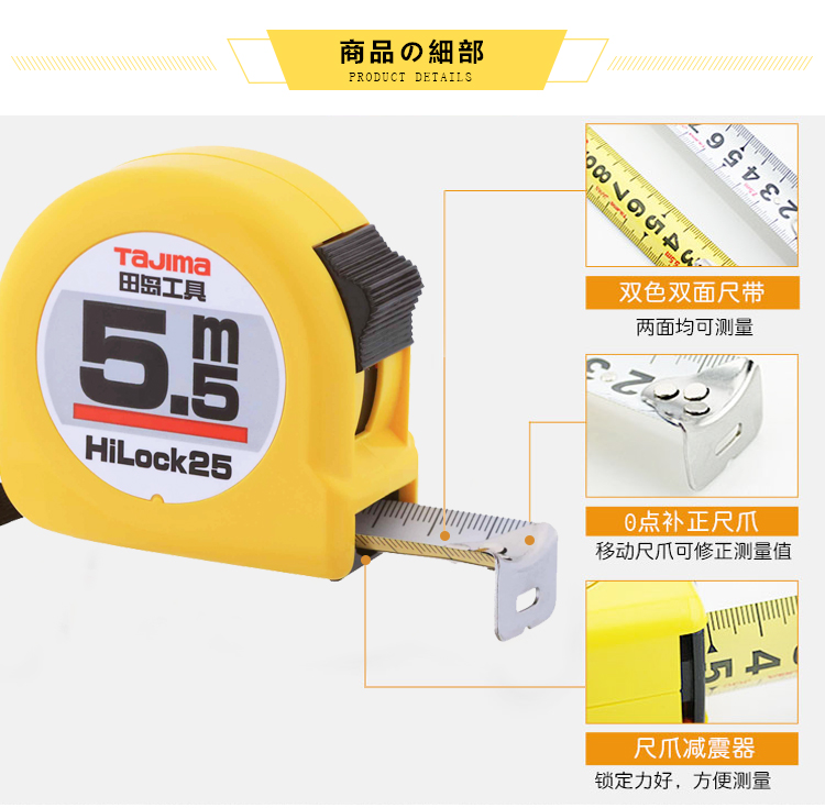 商品名称:田岛(TaJIma)长5.5米钢卷尺盒尺米尺木工尺伸缩尺公制尺带正反面刻度25mm宽L2555 1001-0035