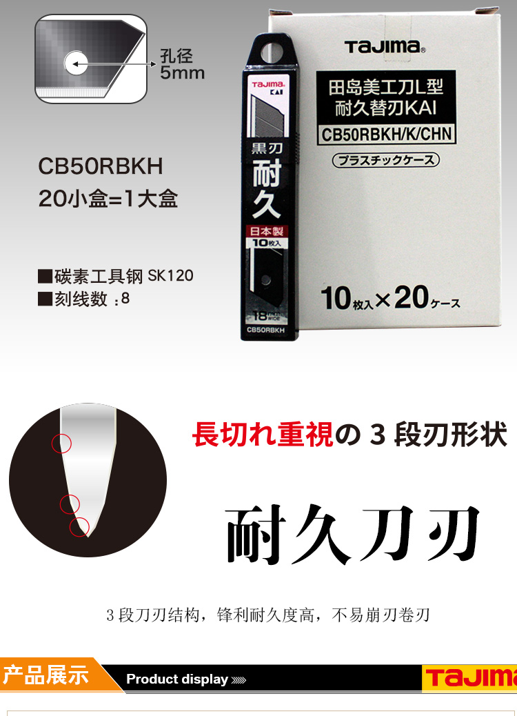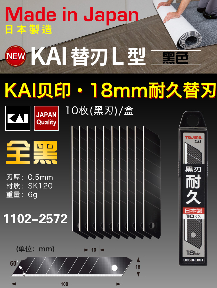 商品名称:田岛(TaJIma)L型18mm宽耐久替刃KAI(黑刃)CB50RBKH/K/CHN 1102-2572
