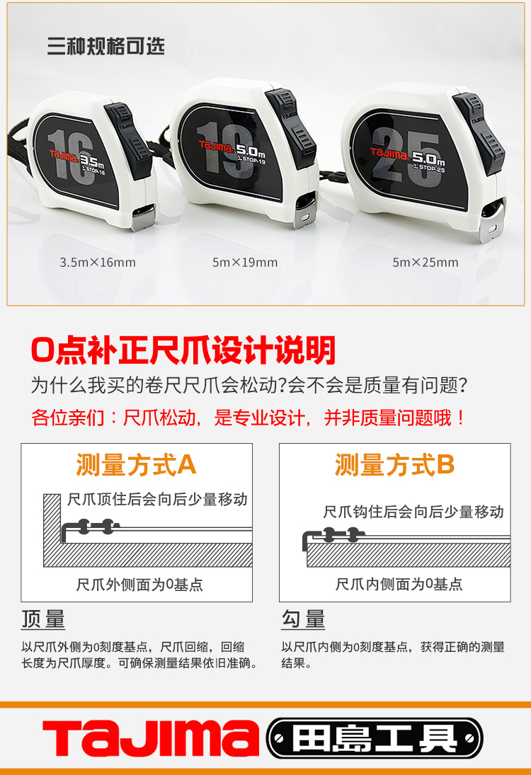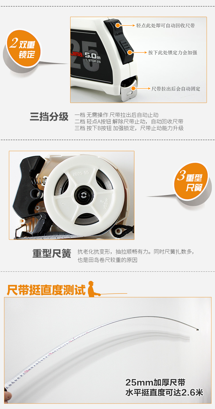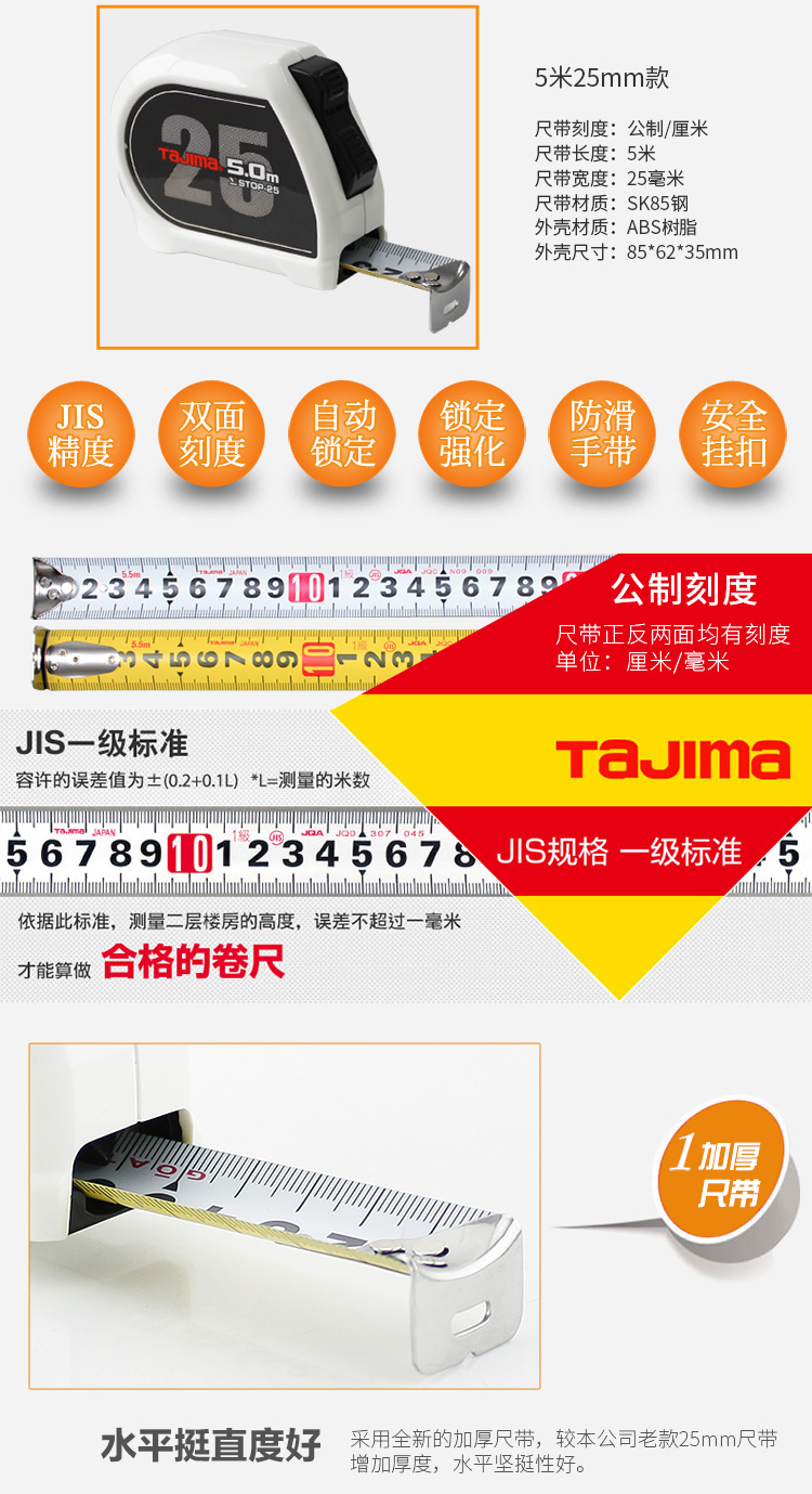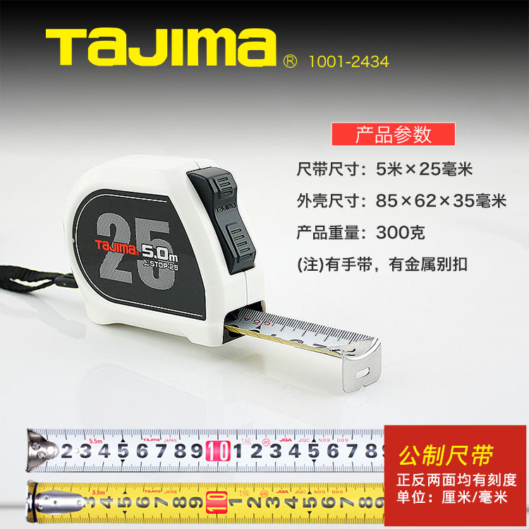 商品名称:田岛(TaJIma)功能型SIGMA卷尺长5米尺带宽度25mm1001-2434