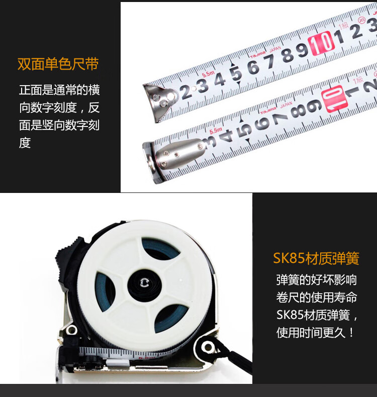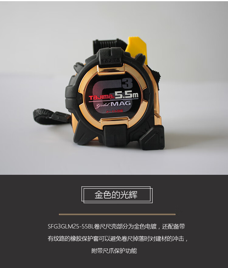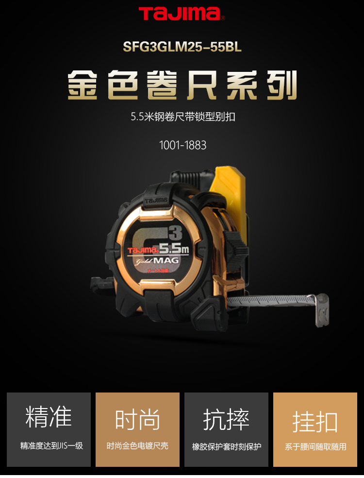 田岛(TaJIma)长5.5米钢卷尺盒尺木工尺伸缩尺配安全别扣25mm宽 1001-1883
