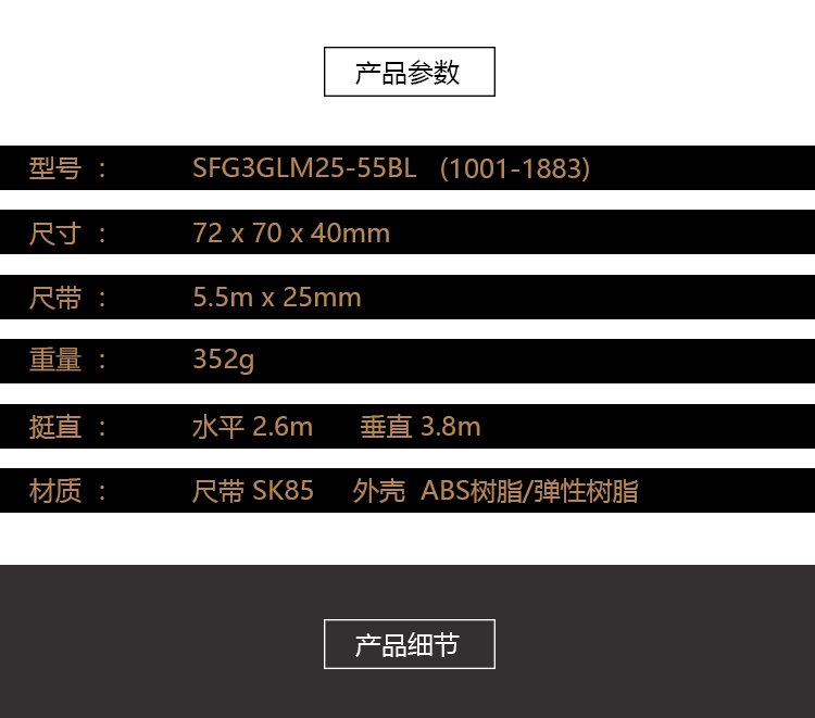 商品名称:田岛(TaJIma)长5.5米钢卷尺盒尺木工尺伸缩尺配安全别扣25mm宽 1001-1883