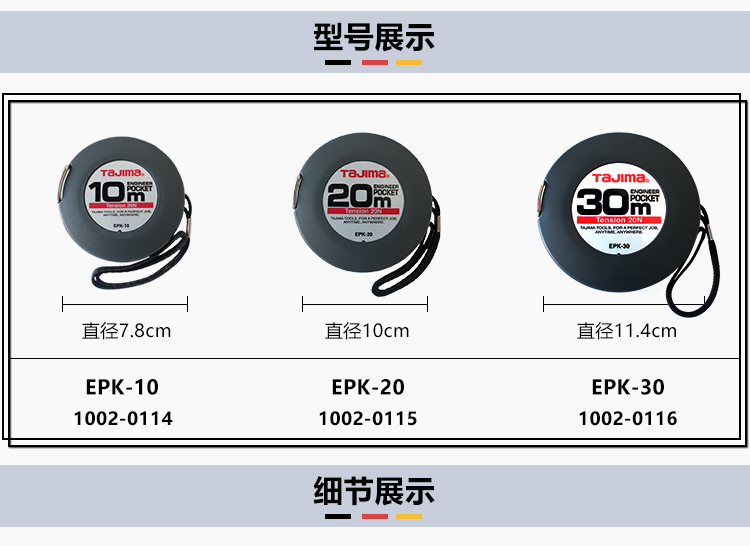 商品名称:田岛(TaJIma)长钢卷尺子圆尺10米EPK-10 1002-0114