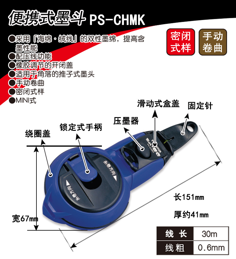 商品名称:田岛(TaJIma)墨斗30米线手动回线不漏墨PS-CHMK 1008-0329
