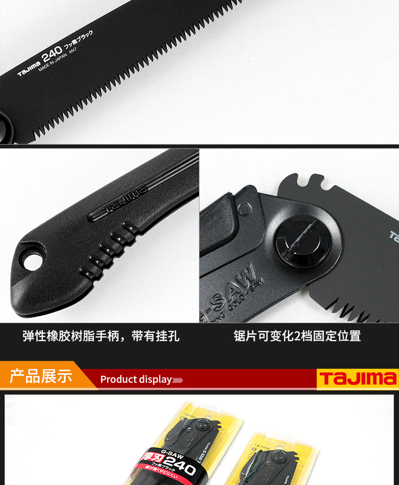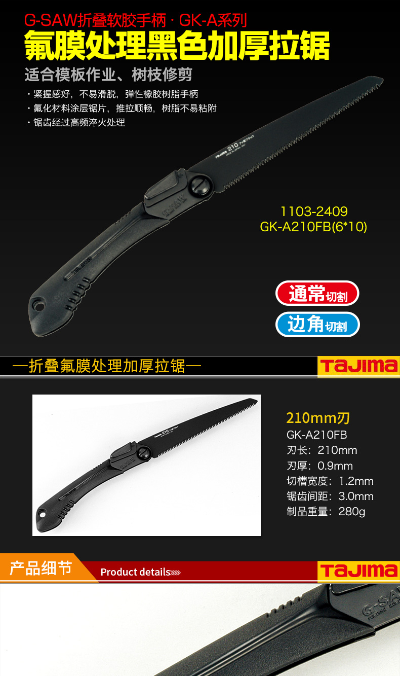 商品名称:田岛(TaJIma)G-SAW折叠氟膜处理黑色210mm加厚锯片拉锯GK-A210FB 1103-2409