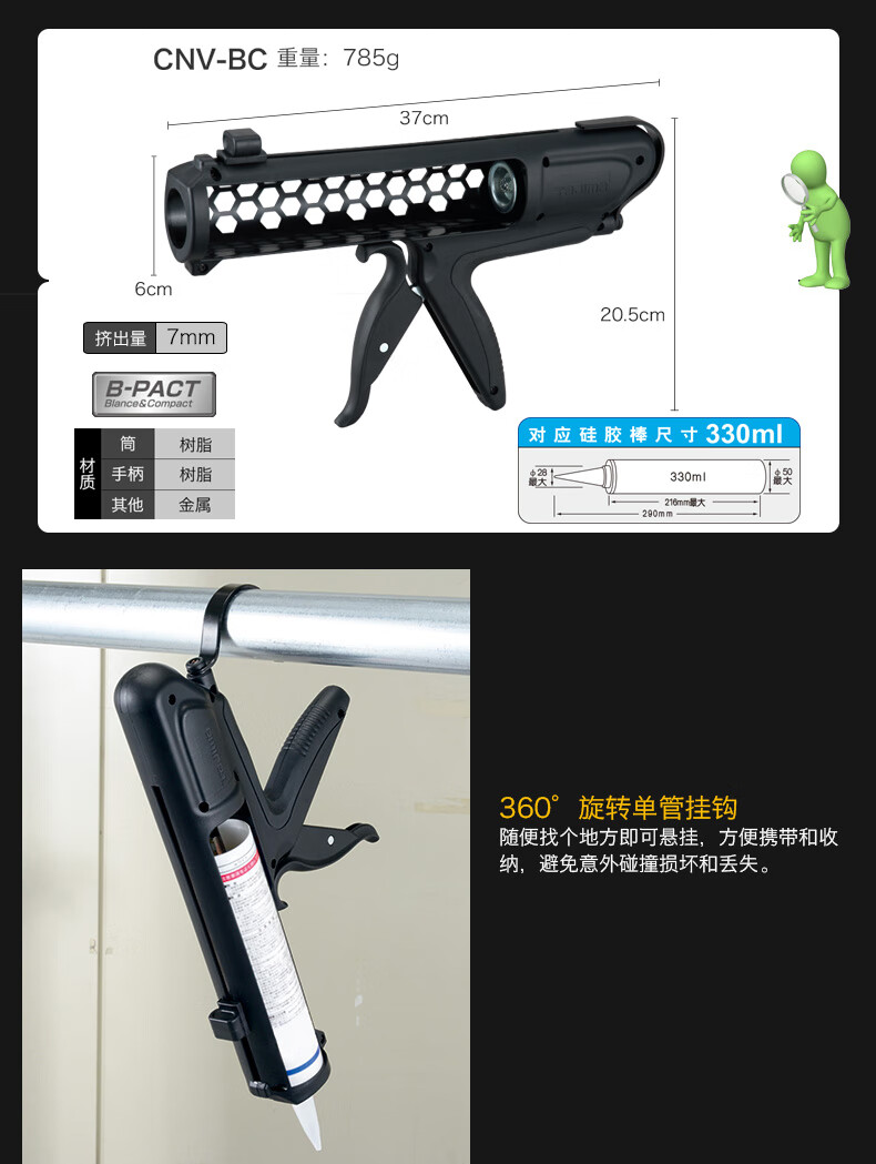 商品名称:田岛(TaJIma)玻璃胶枪硅胶枪压胶枪打胶枪省力BC系列 3004-1768