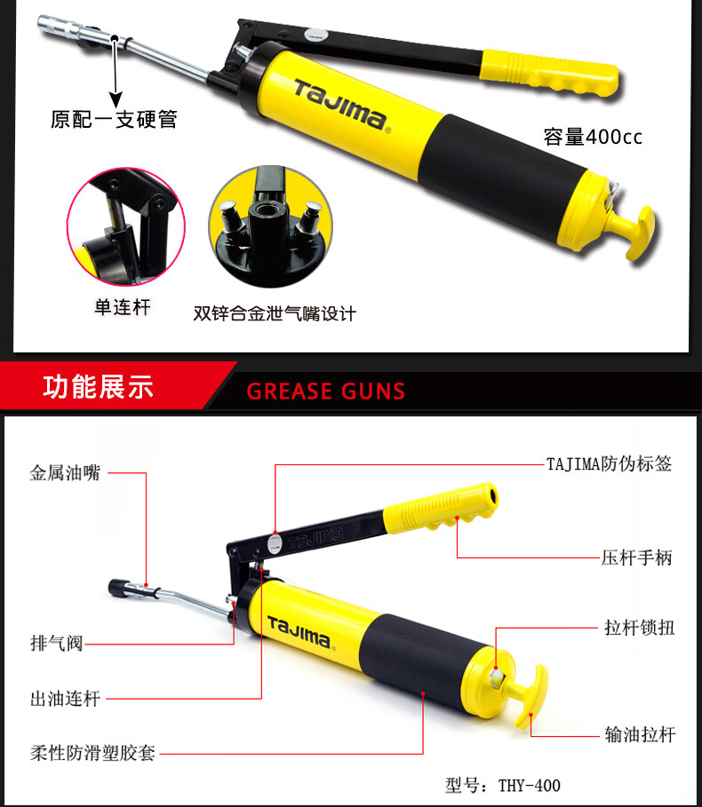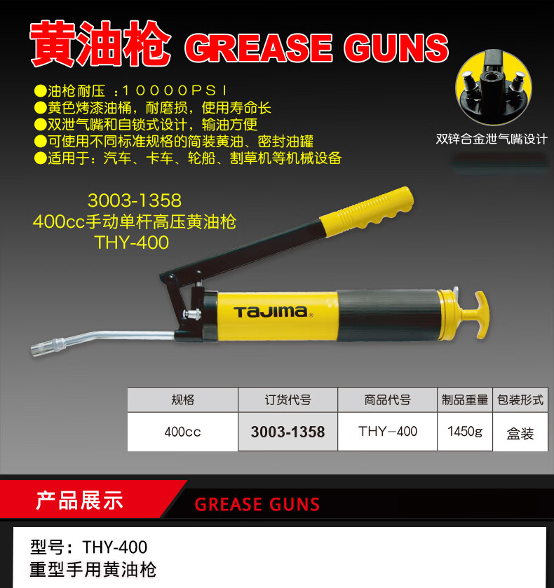 商品名称:田岛(TaJIma)400cc手动单杆高压黄油枪THY-400 3003-1358 黄油枪