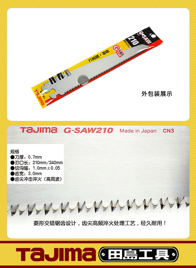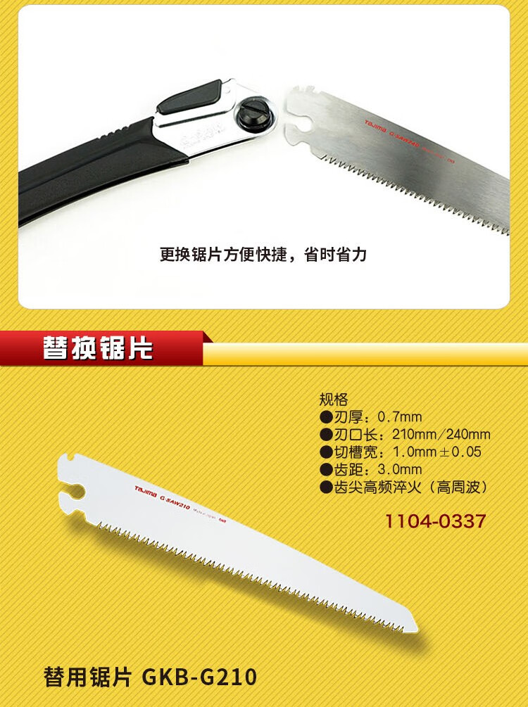 商品名称:田岛(TaJIma)快速折叠210mm锯子园林果木替换锯片GKB-G210/CHN 1104-0337