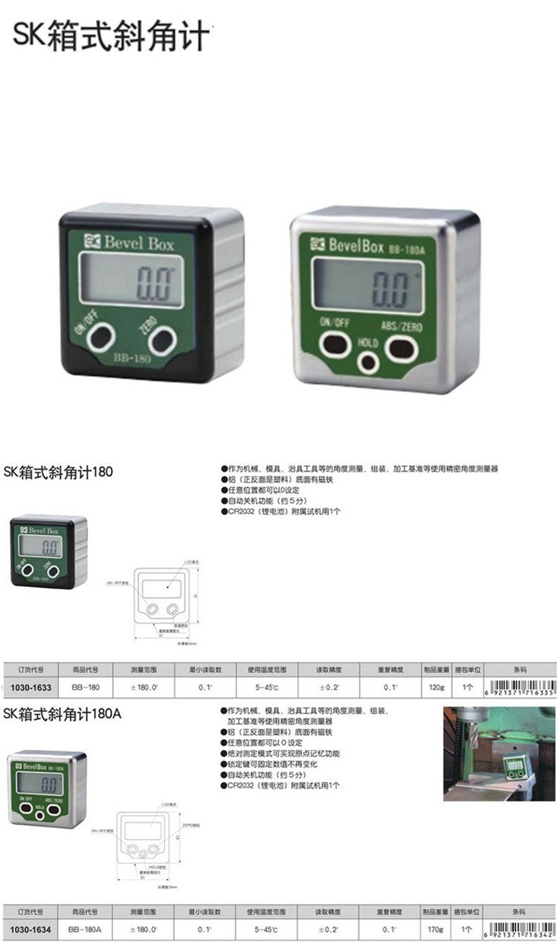 商品名称:田岛(TAJIMA)BB-180 SK箱式斜角计180 测量器 1030-1633
