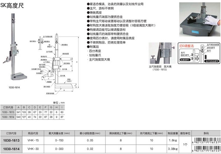 商品名称:田岛(TAJIMA)VHK-30 SK高度尺0-300 1030-1614