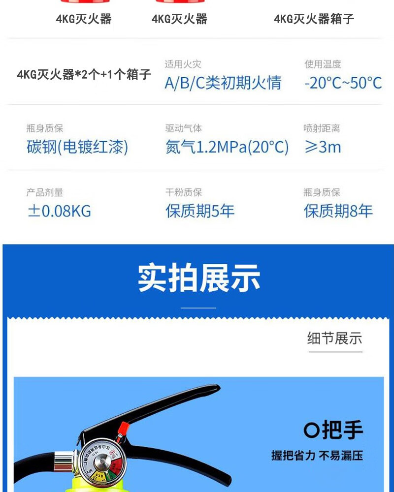 商品名称:晟泰邦 灭火瓶套装带箱子 干粉灭火器4KG灭火器*2个+1个箱子 单位:套