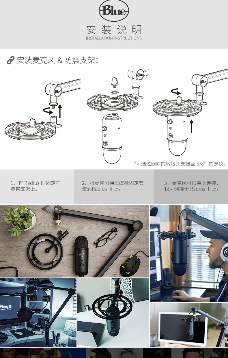 罗技(Logitech) Blue Radius III 麦克风金属支架主播直播话筒台式防震架 Blue Radius III 麦克风支架