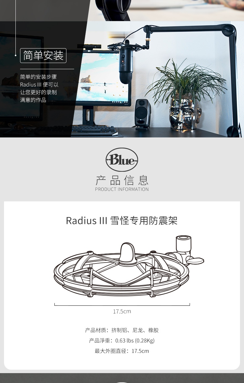 商品名称:罗技(Logitech) Blue Radius III 麦克风金属支架主播直播话筒台式防震架 Blue Radius III 麦克风支架