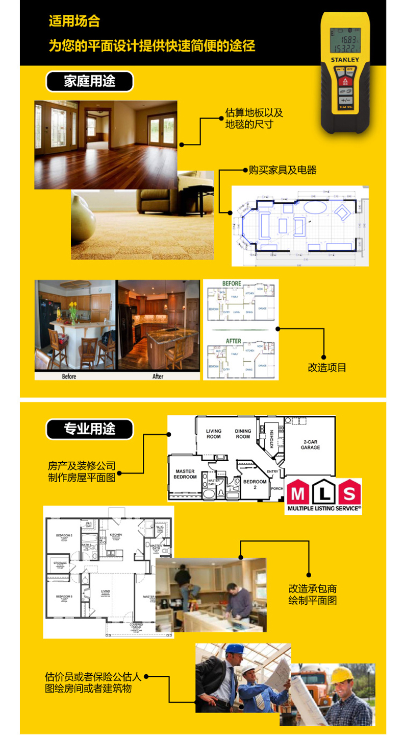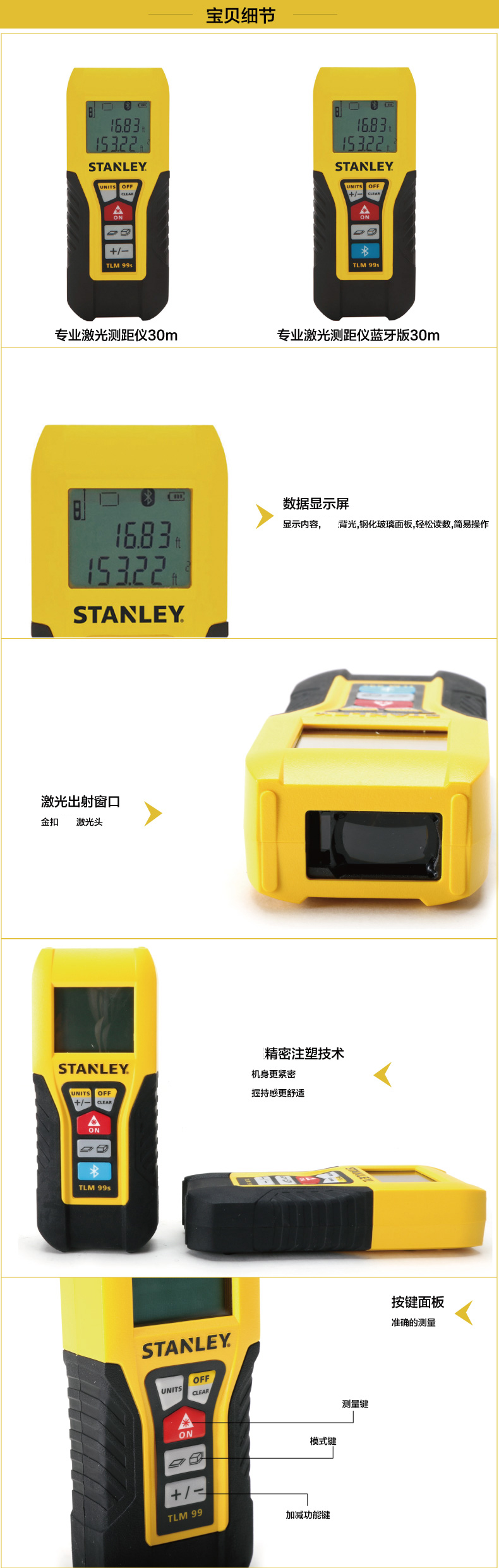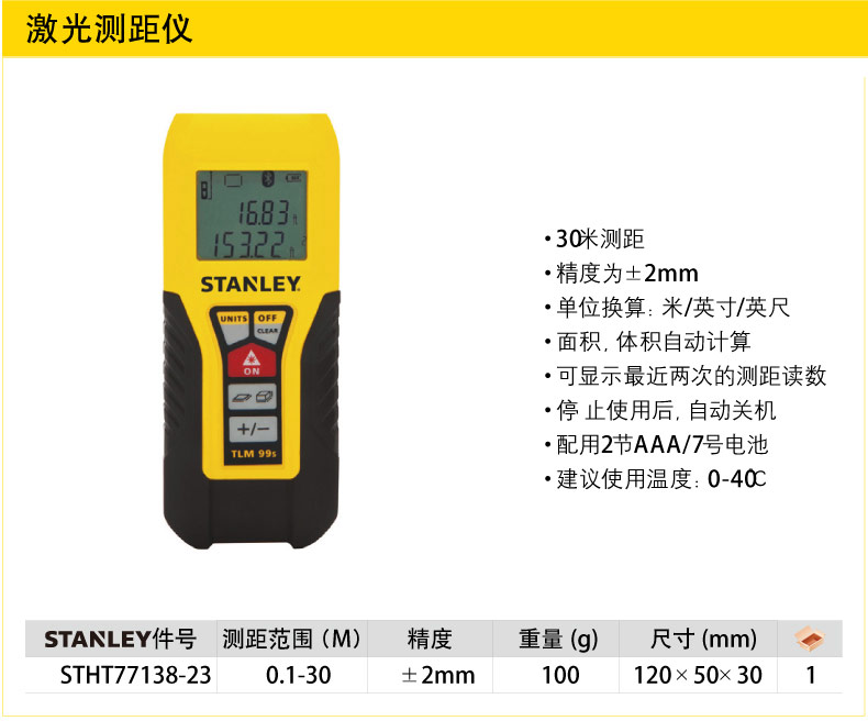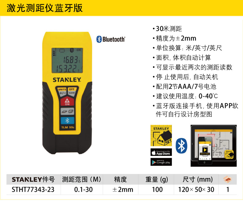 商品名称:STANLEY/史丹利 30米激光测距仪/蓝牙版电子尺 STHT77138/77343