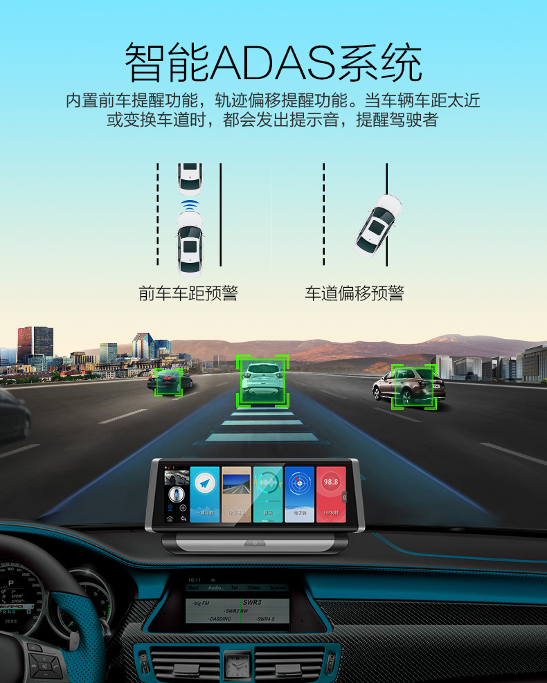凌度 中控台行车记录仪双镜头大货车24v电子狗导航倒车影像一体机