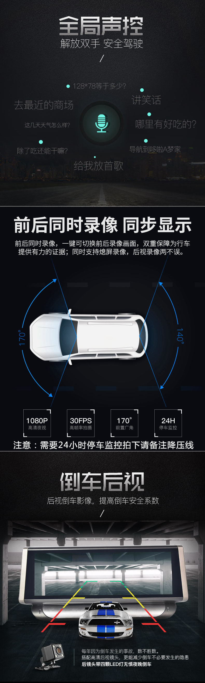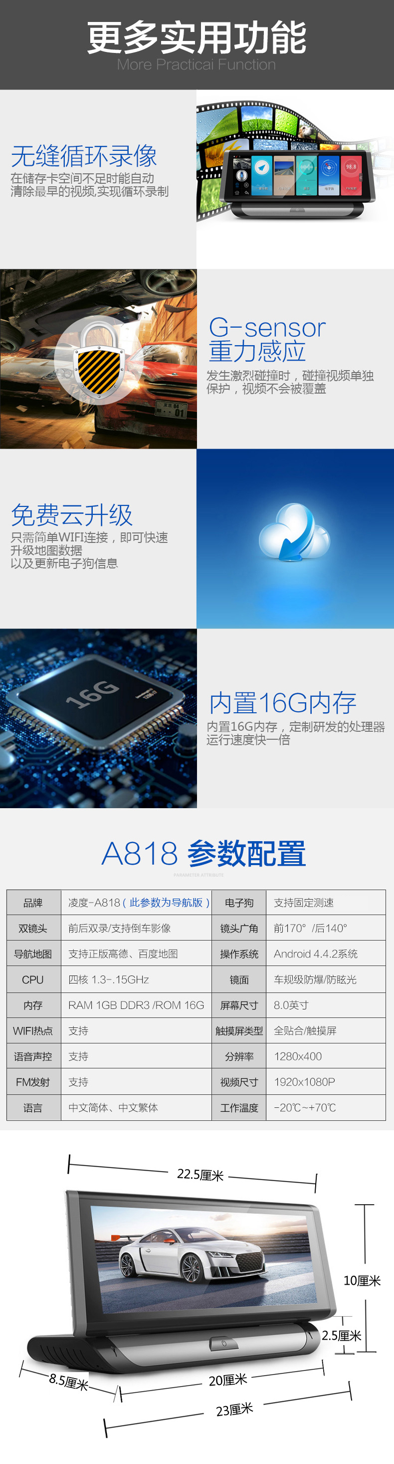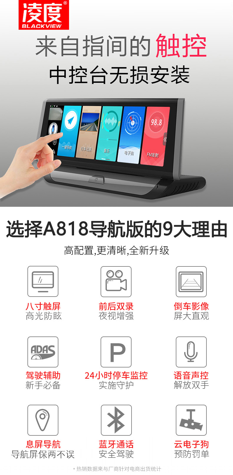 商品名称:凌度 中控台行车记录仪双镜头大货车24v电子狗导航倒车影像一体机