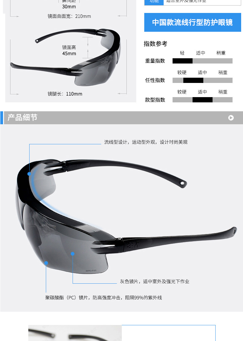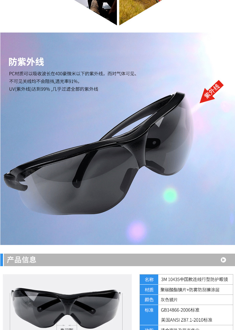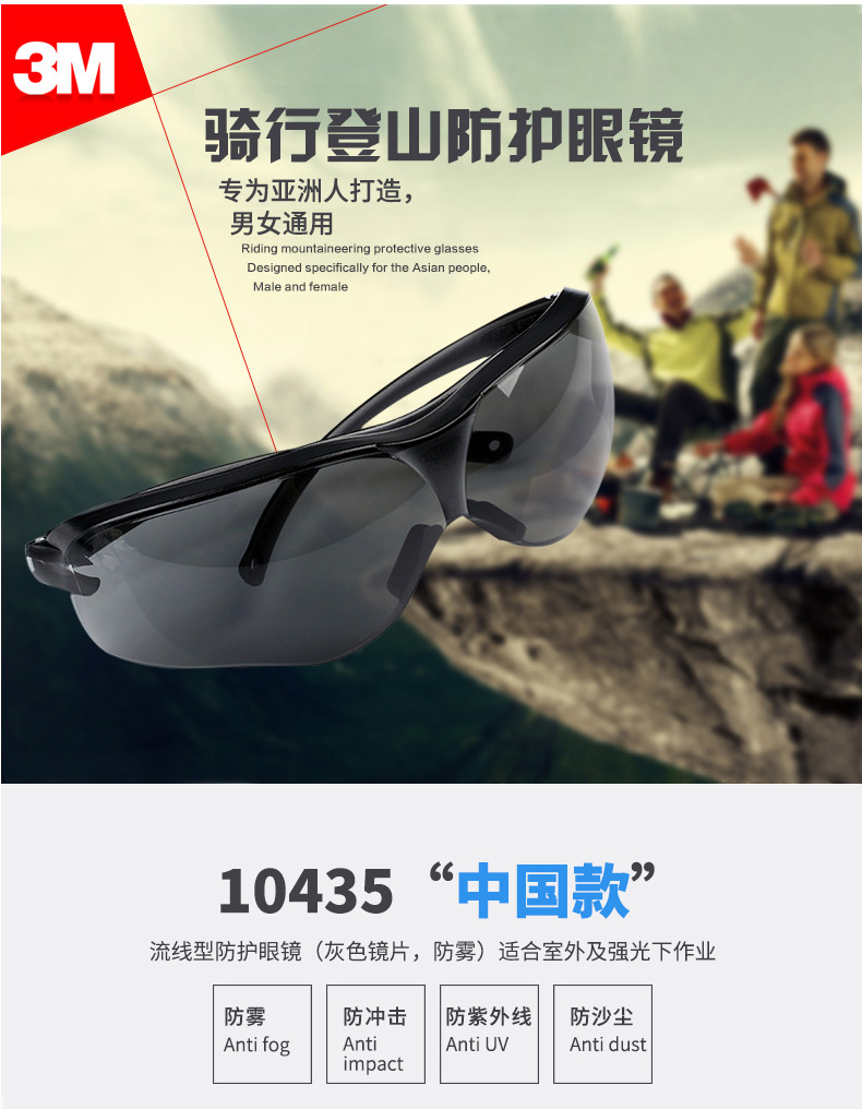 商品名称:3M 10435防护眼镜强光护目镜尘沙防雾防风防冲击男女运动骑行劳保
