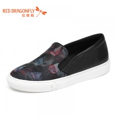 红蜻蜓 情侣鞋春新款真皮舒适一脚套休闲皮鞋情侣板鞋