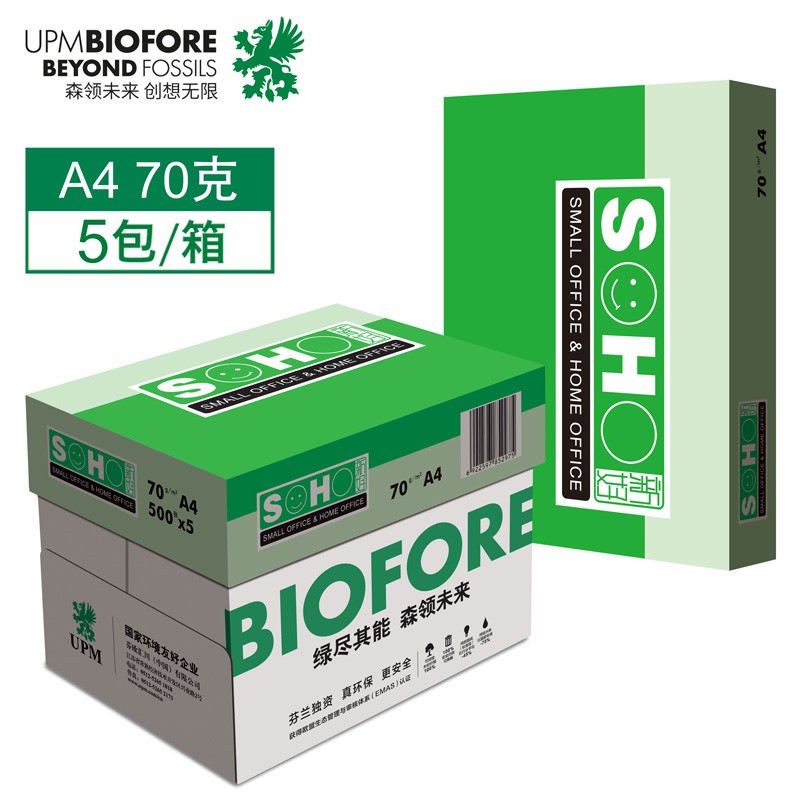 商品名称:UPM绿新好 70g A4打印纸 复印纸 500张/包 5包/箱(2500张)