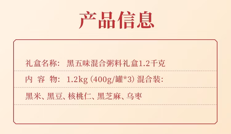 商品名称:禾煜(HEYU) 杂粮干货礼盒 不熏不掺不染 五谷杂粮礼盒 粥料礼盒 黑五味礼盒1.2kg