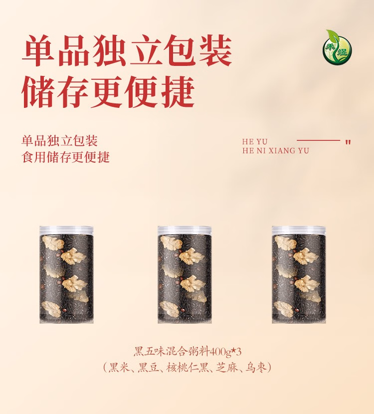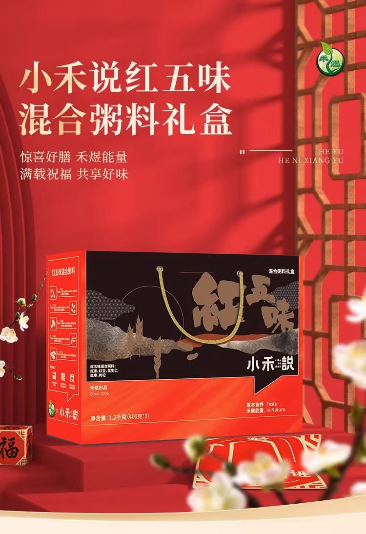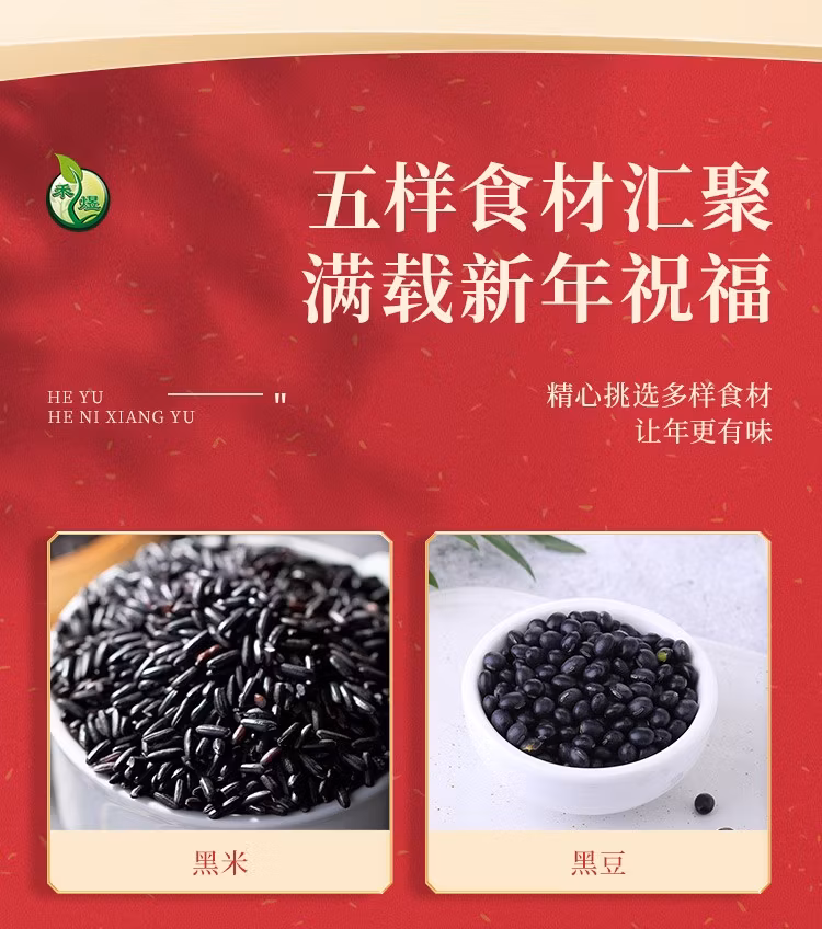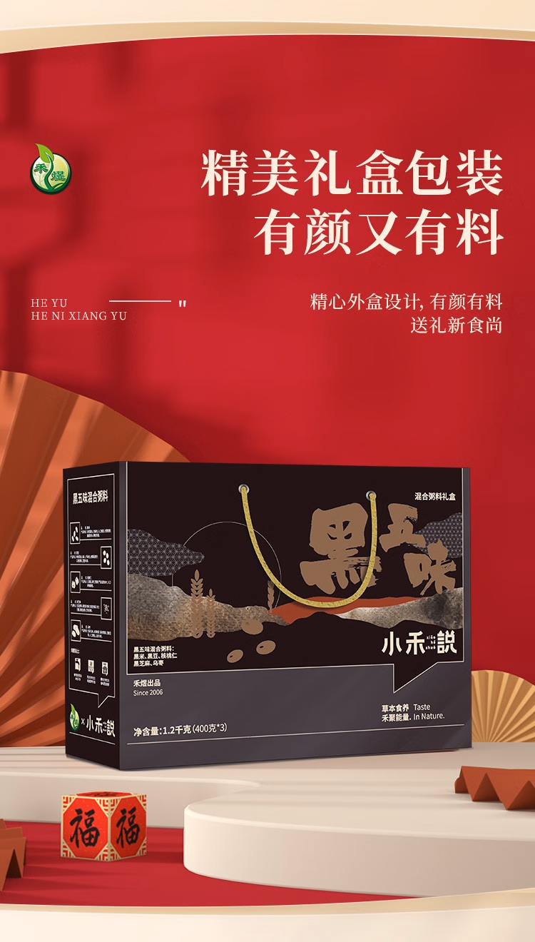 禾煜(HEYU) 杂粮干货礼盒 不熏不掺不染 五谷杂粮礼盒 粥料礼盒 黑五味礼盒1.2kg