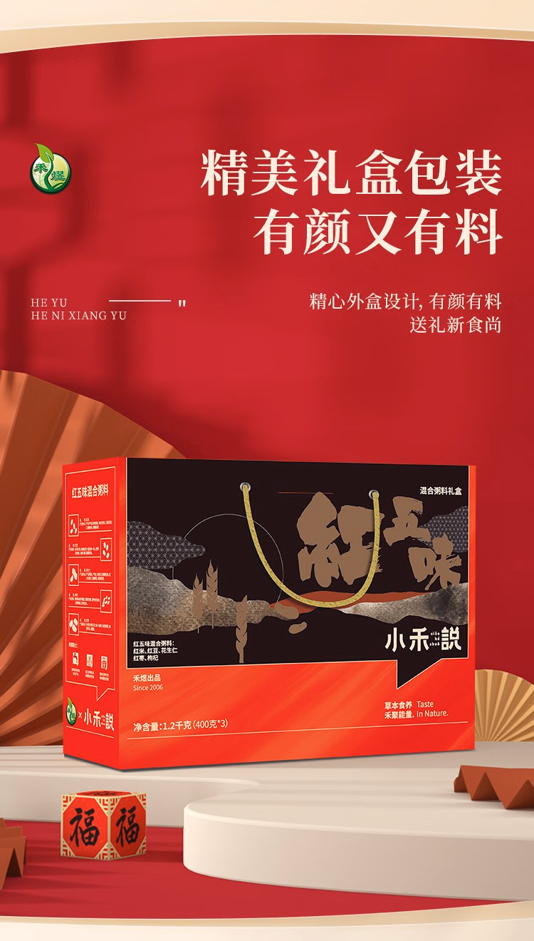 禾煜(HEYU) 杂粮干货礼盒 不熏不掺不染 五谷杂粮礼盒 粥料礼盒 红五味礼盒1.2kg