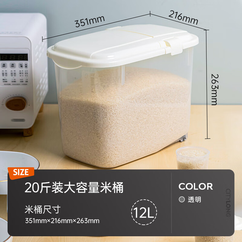 商品名称:禧天龙米桶米缸家用密封储米面粉防潮防虫厨房收纳箱带滑轮20斤装大容量 单位:个