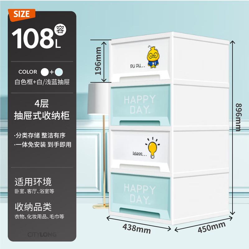 商品名称:禧天龙 免安装收纳柜 4层 夹缝收纳柜 儿童简易衣柜 内衣收纳 床头柜 宝宝玩具收纳箱 零食储物柜 单位:个