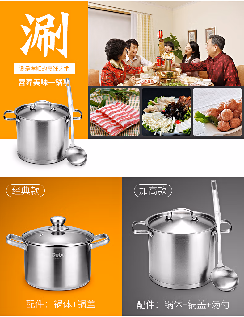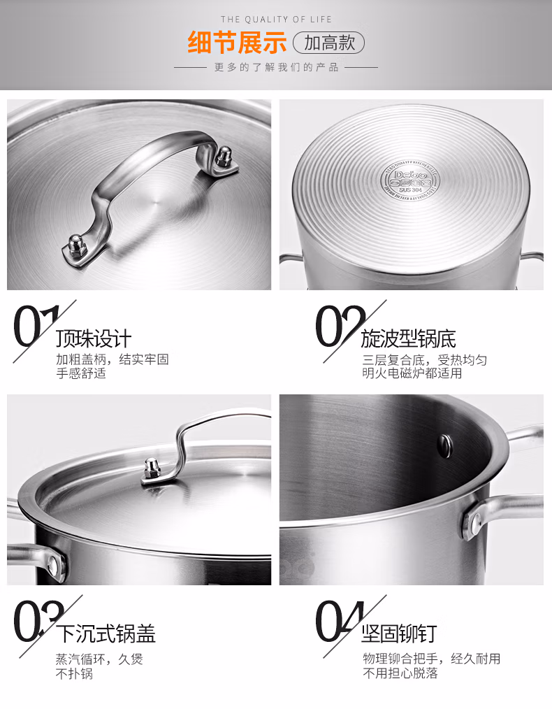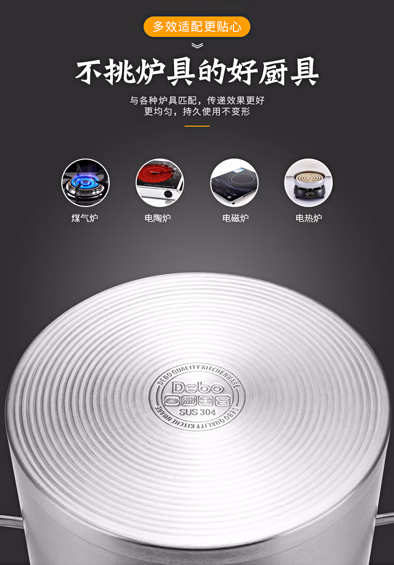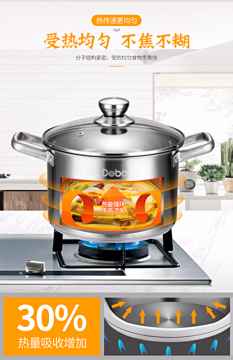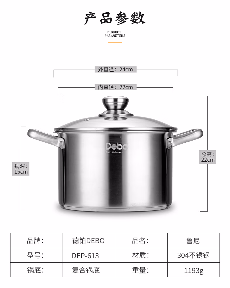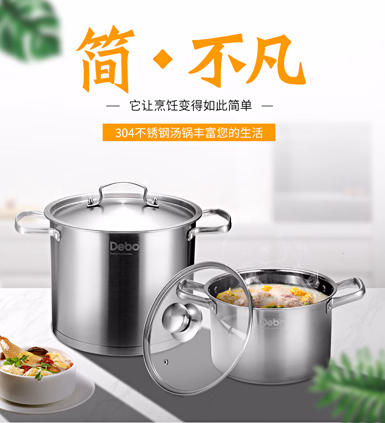 商品名称:德铂Debo 汤锅304不锈钢锅高汤煲燃气电磁炉通用 布莱特 单位:个