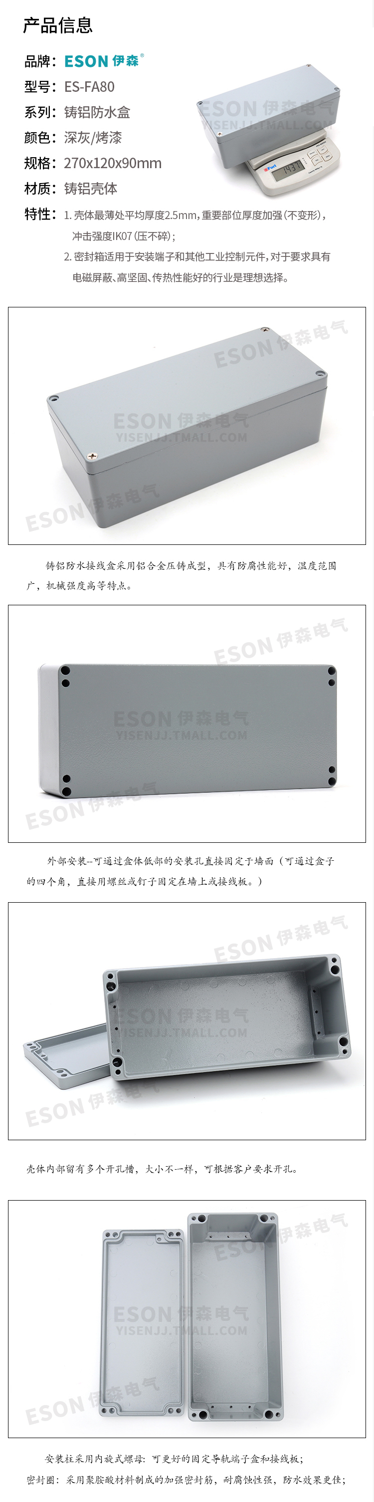 商品名称:伊森 铝防水盒 金属接线盒 电缆接线盒 接线盒 ES-FA80