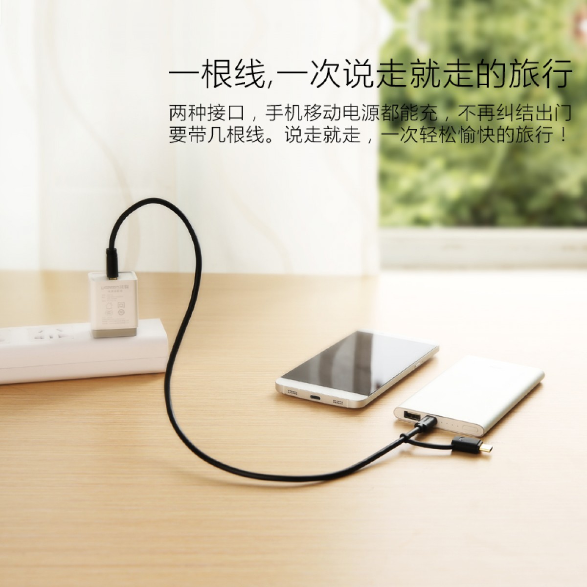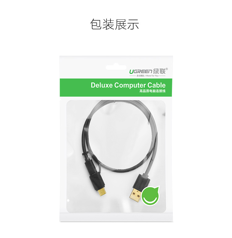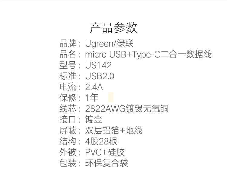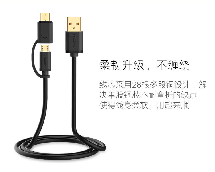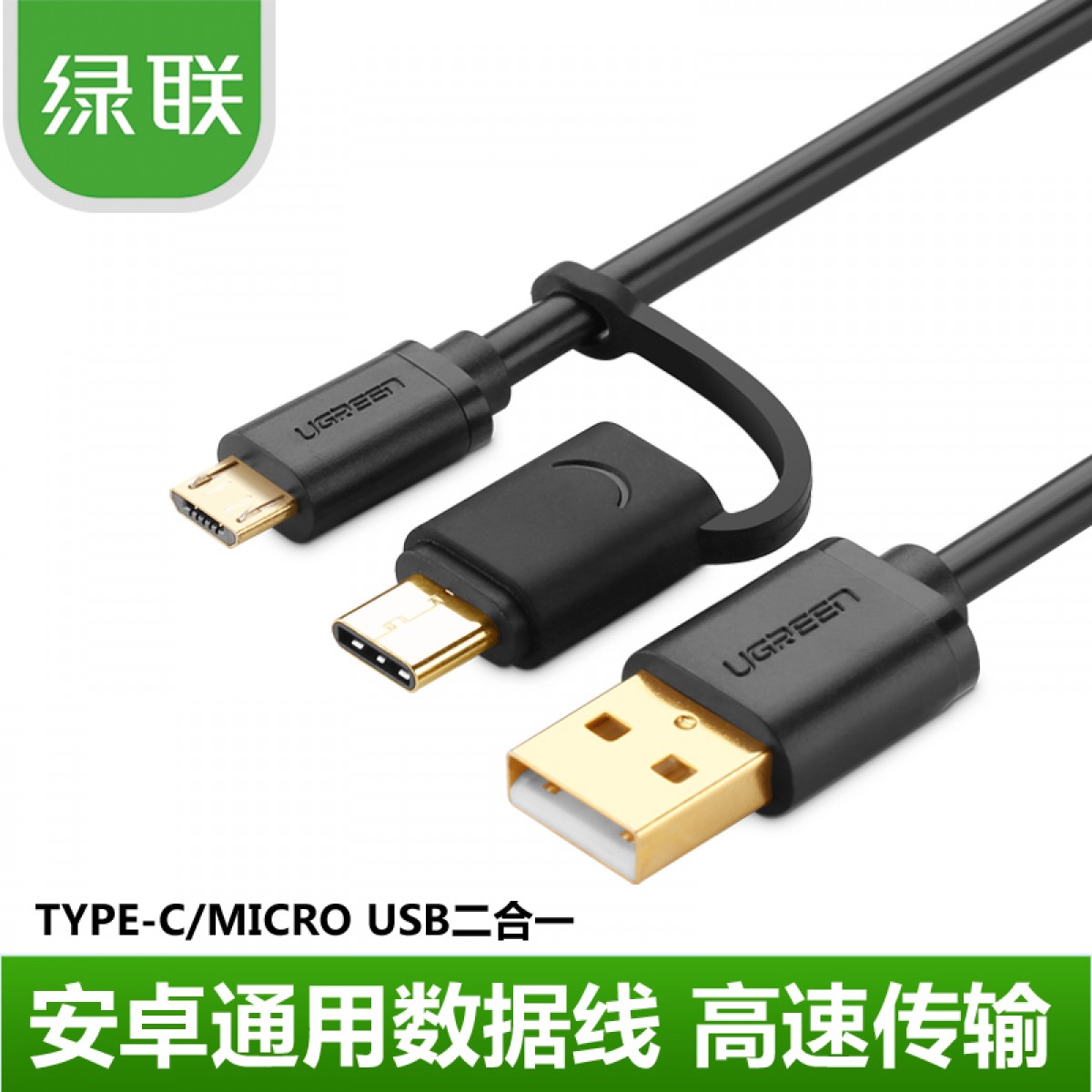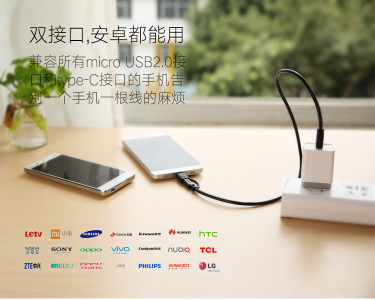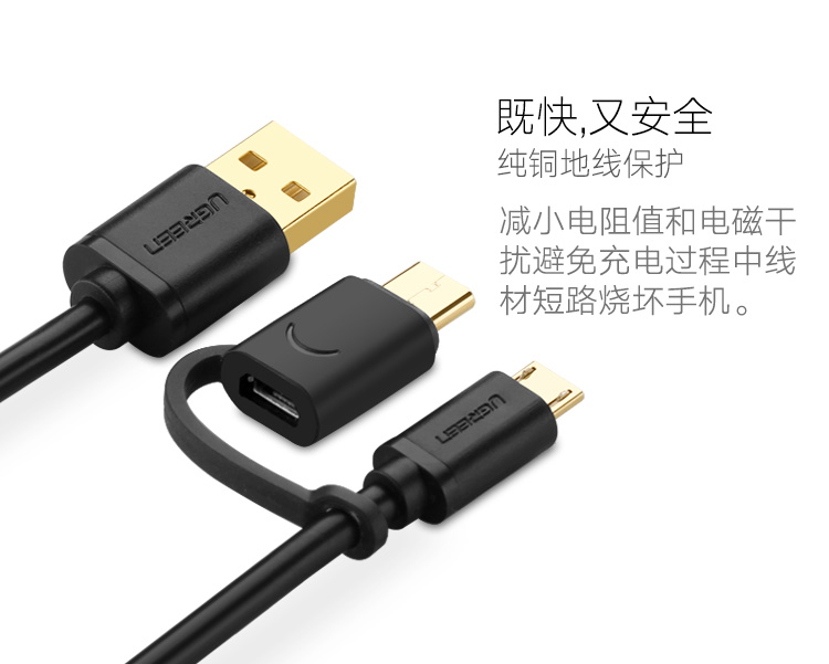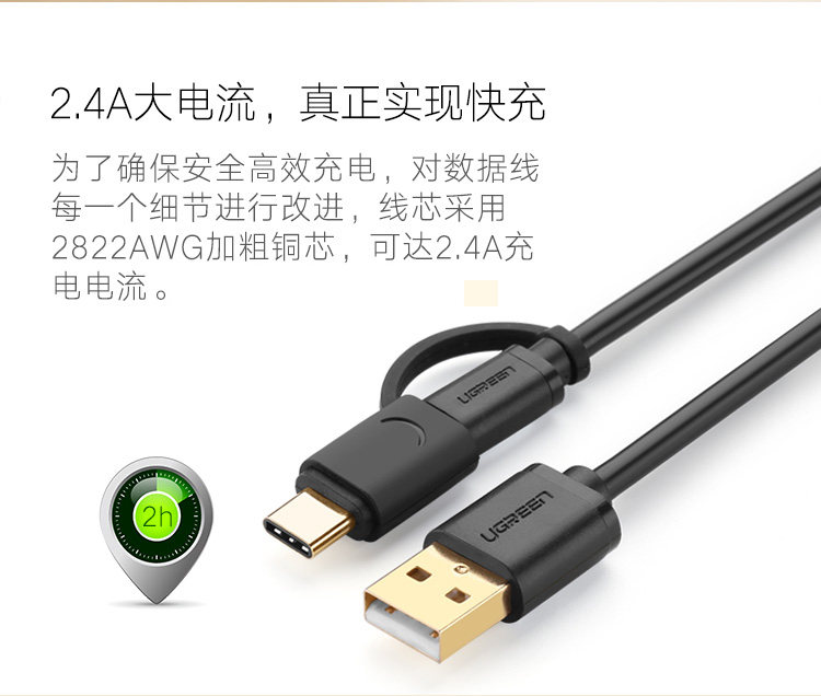 商品名称:绿联 安卓数据线type-c手机充电线双头华为P9小米4C/5乐视充电器线 一拖二多功能同时充电传输快充充电加长线