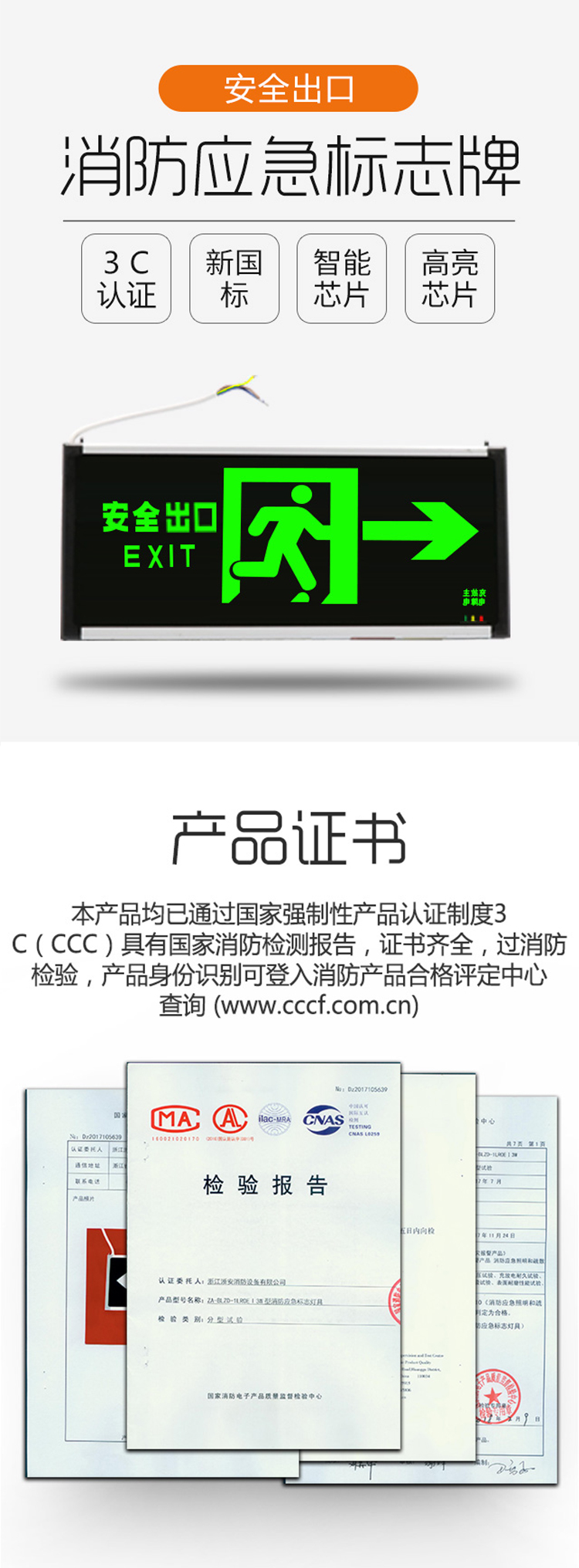 星浙安 安全出口消防指示灯LED新国标消防应急灯 安全出口疏散指示牌紧急通道标志灯 单面应急灯 向右 单位:个 5个起订