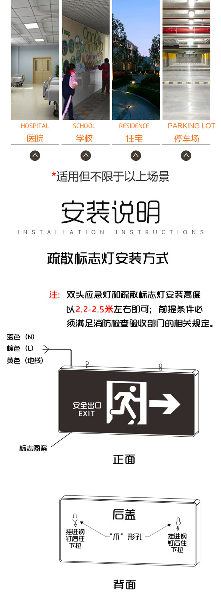 商品名称:星浙安 安全出口消防指示灯LED新国标消防应急灯 安全出口疏散指示牌紧急通道标志灯 单面应急灯 向右 单位:个 5个起订