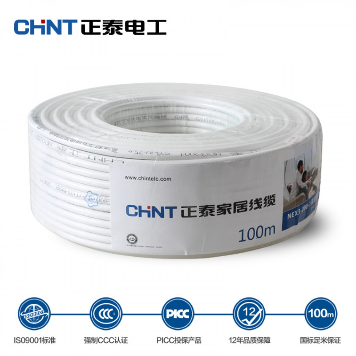 商品名称:正泰 电视线电线电缆 同轴线缆 闭路线 有线高清电视信号线 100米