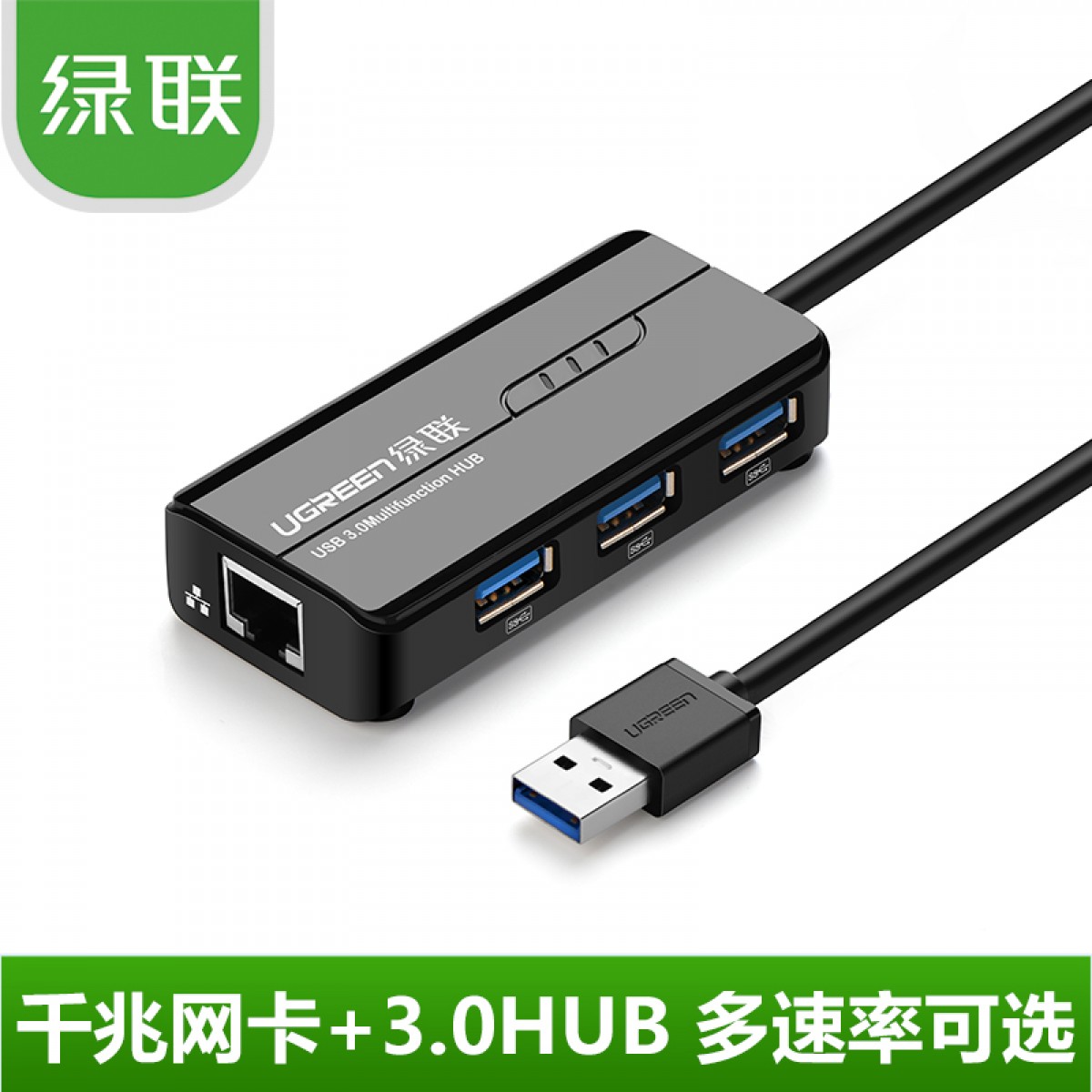 商品名称:绿联usb网卡转换器带3口hub笔记本电脑usb转网线接口百兆千兆网卡外置3.0接口扩展器高速网络支持校园宽带