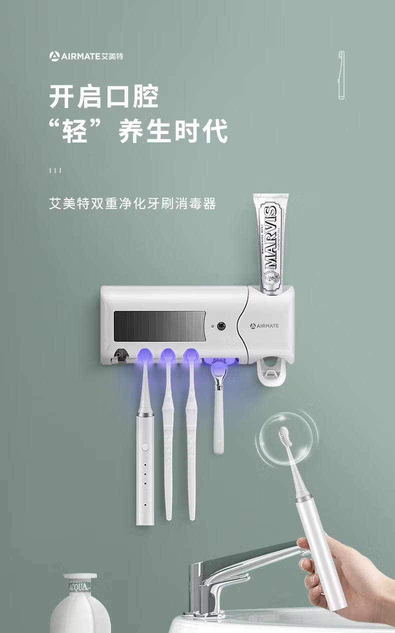 商品名称:艾美特(Airmate)智能牙刷消毒器置物架紫外线杀菌卫生间壁挂电动收纳盒 旗舰款LST01-A01