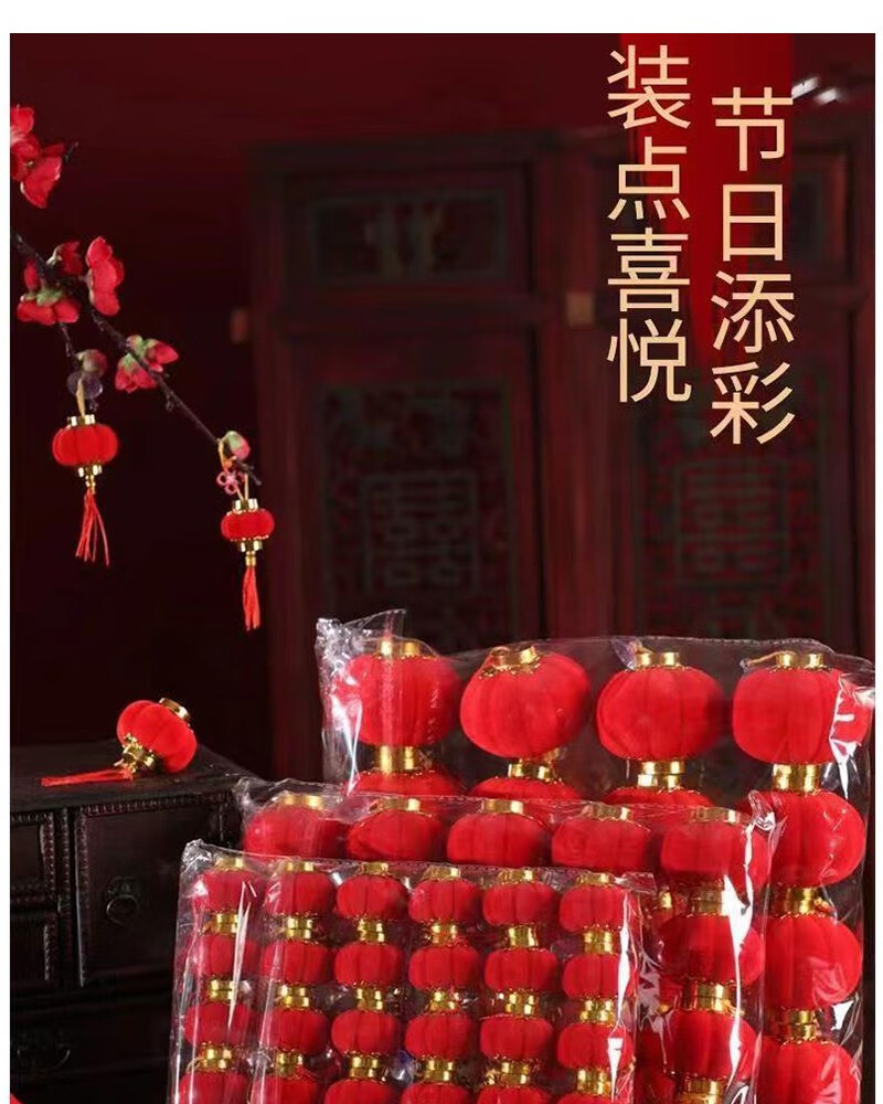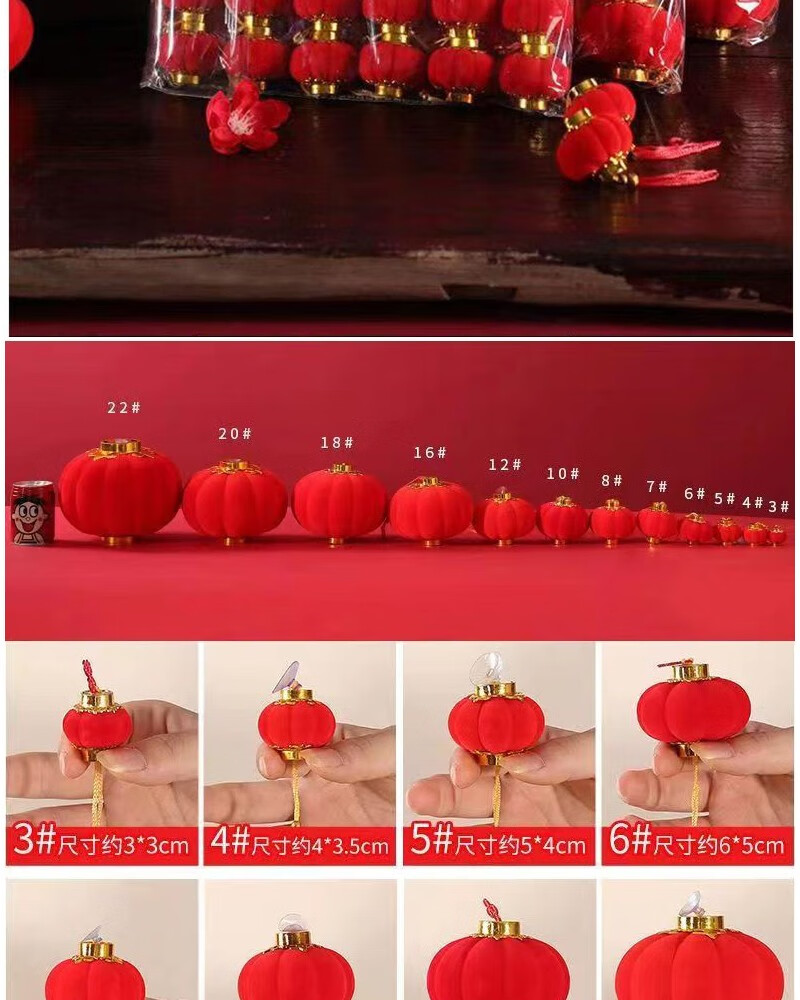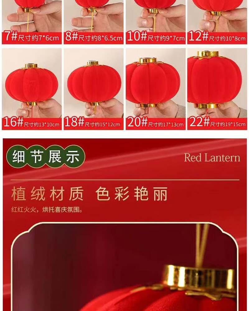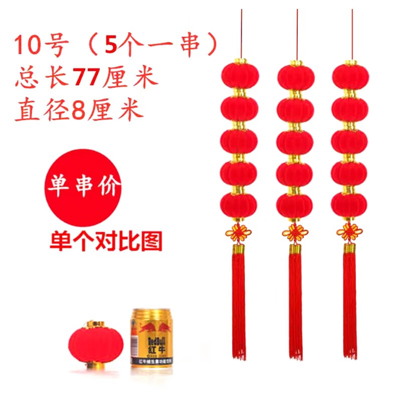 商品名称:晟泰邦 大红植绒小灯笼连串挂饰新年场景装饰布置 单位:串 5串起订 12#5连串 90cm*10cm