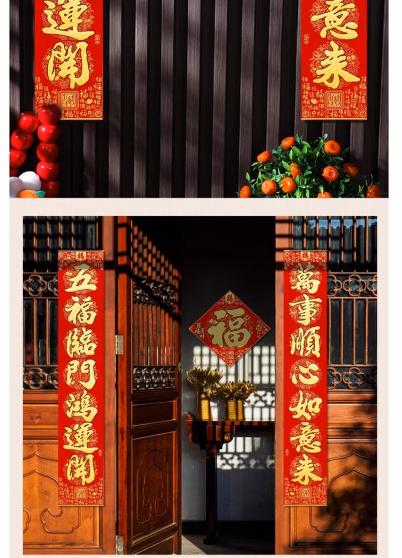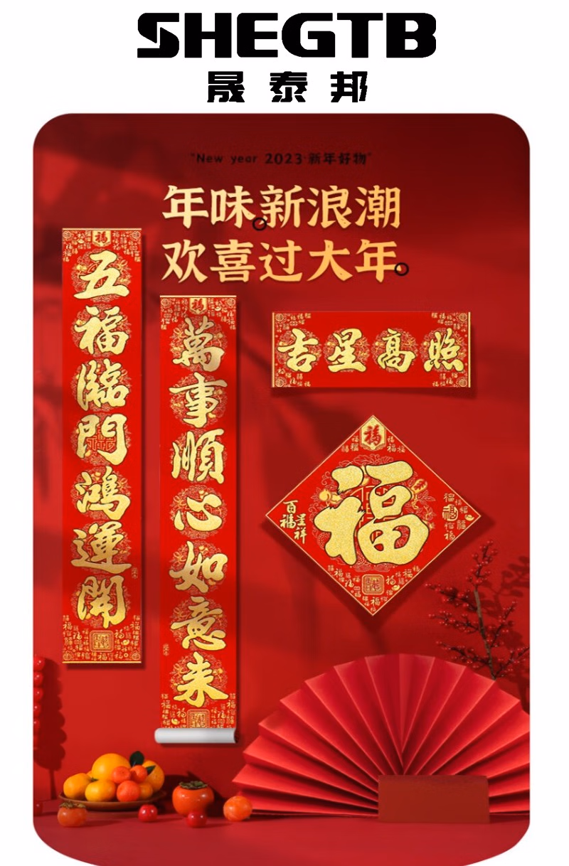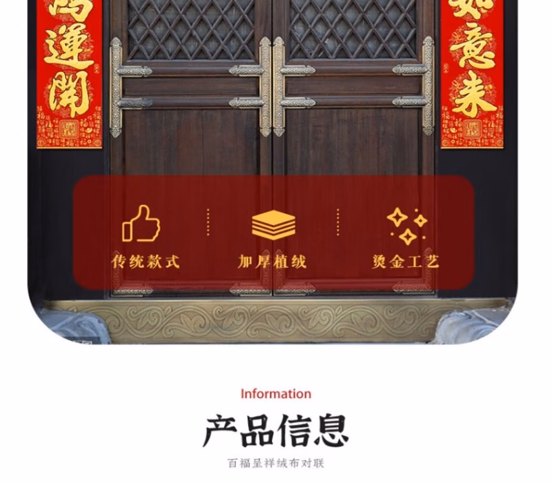 商品名称:晟泰邦 春节对联春联大礼包 新年装饰套装乔迁新居过年大门高档百福绒布门联 1.6米吉星高照