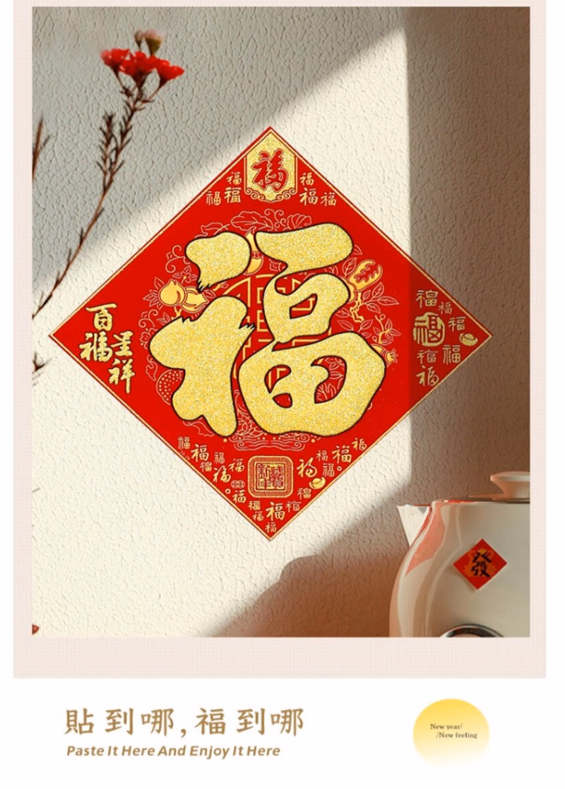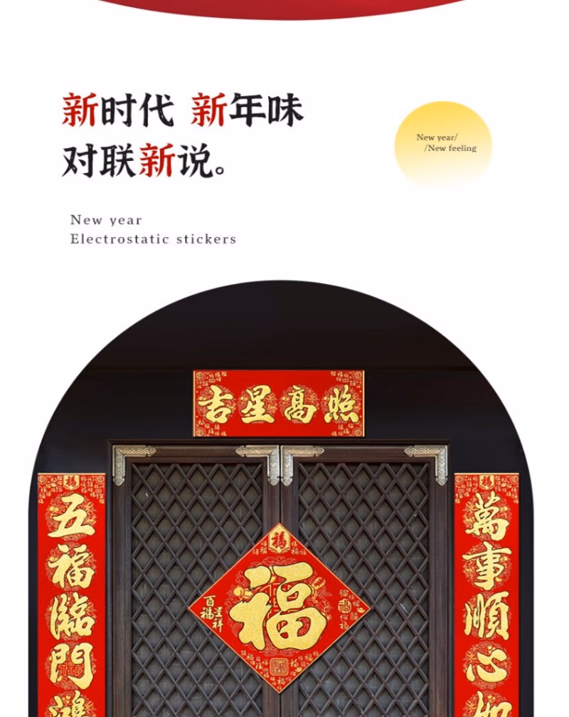 晟泰邦 春节对联春联大礼包 新年装饰套装乔迁新居过年大门高档百福绒布门联 1.6米吉星高照