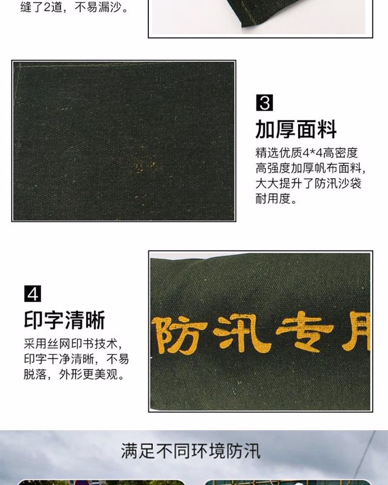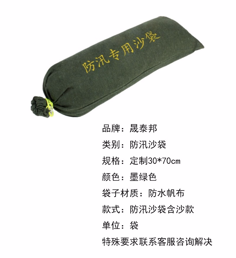 商品名称:晟泰邦 防汛沙袋 墨绿色防水帆布 防汛沙袋含沙款定制30*70cm 单位:袋