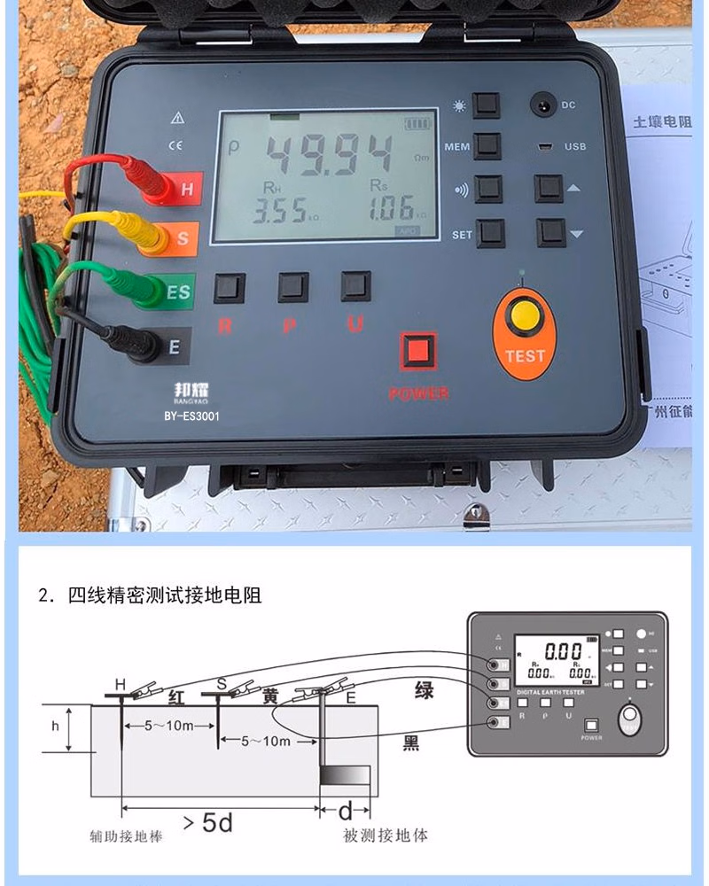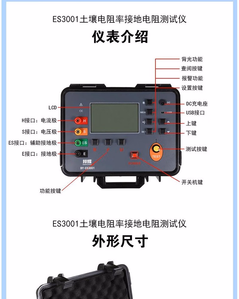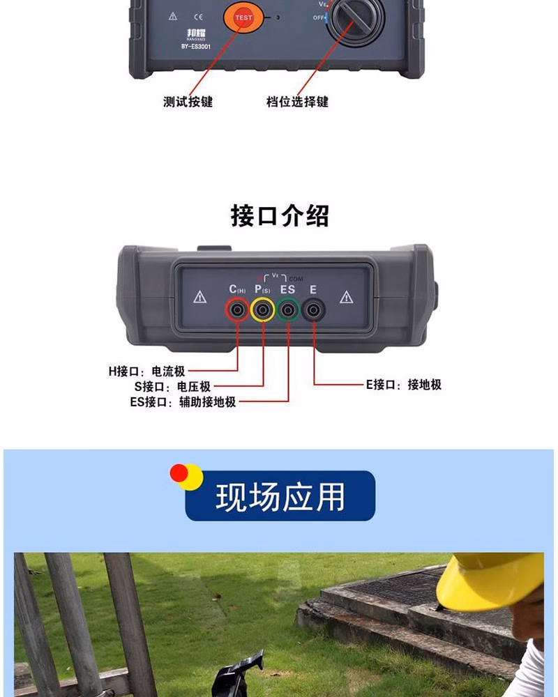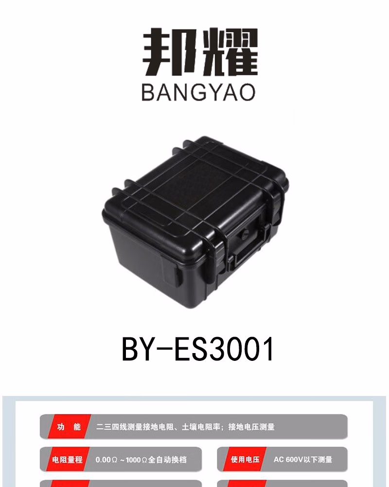 商品名称:邦耀BY-ES3001数字接地电阻测试仪【多功能】 单位:台