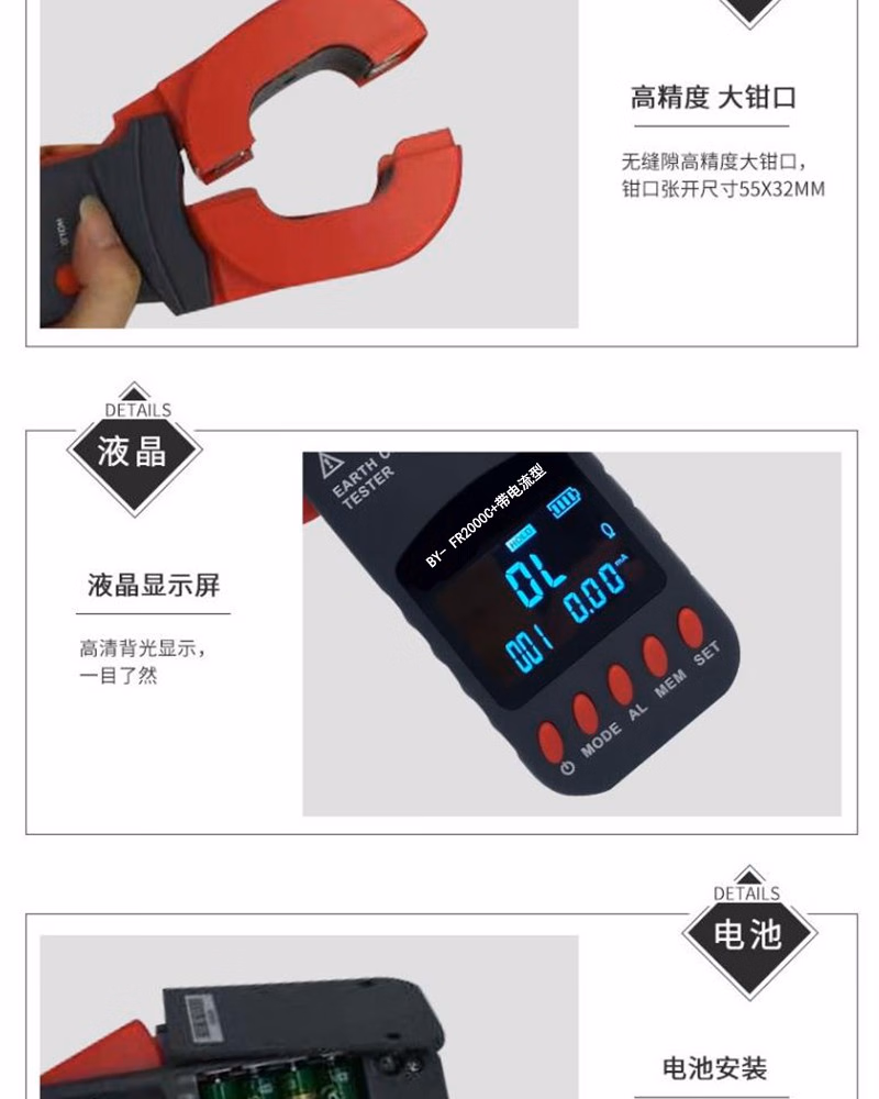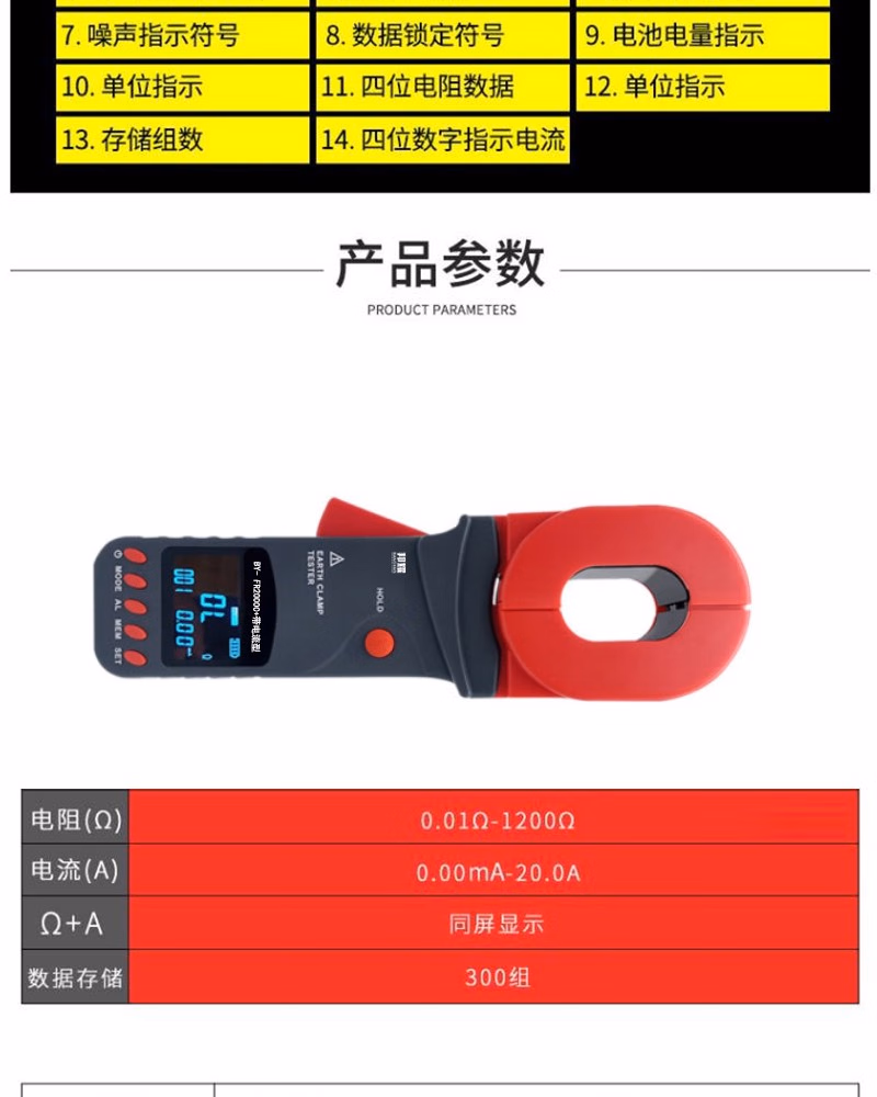 商品名称:邦耀 BY- FR2000C+带电流型 钳形接地电阻测试仪 单位:台