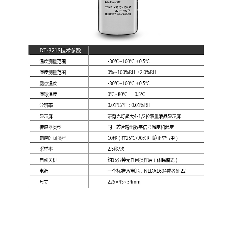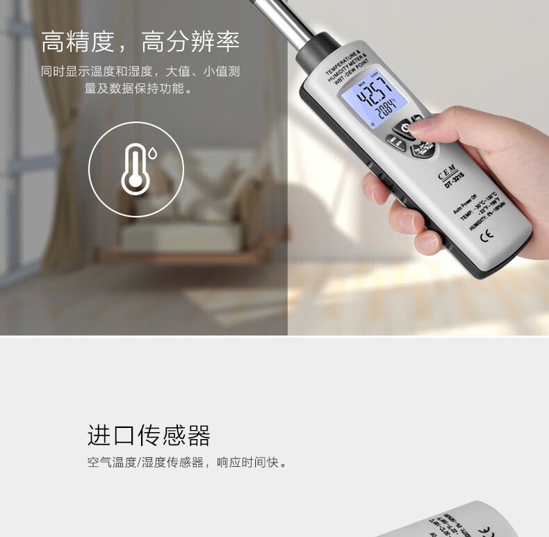 商品名称:华盛昌(CEM)DT-321S温湿度计 专业高精度 湿球 露点温度检测仪 工业温湿度计 单位:台