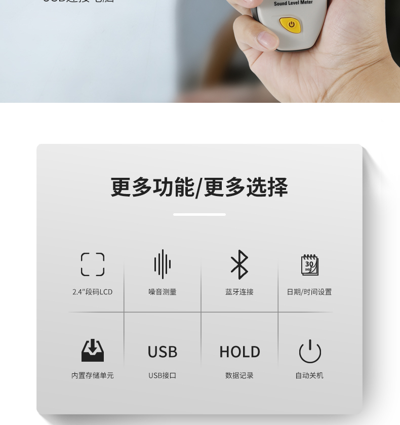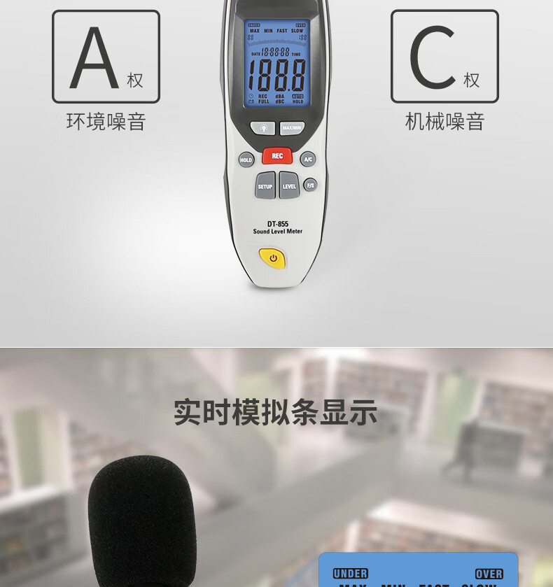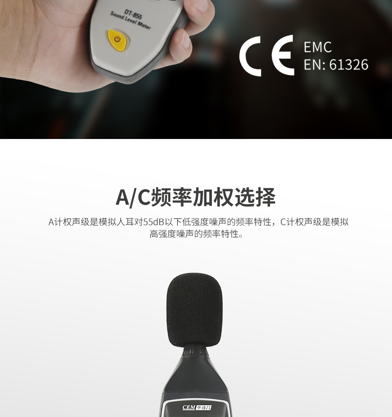 商品名称:华盛昌(CEM)DT-855数字噪音计 高精度分贝仪手持式噪声噪音测试仪环境音量测量仪 单位:台
