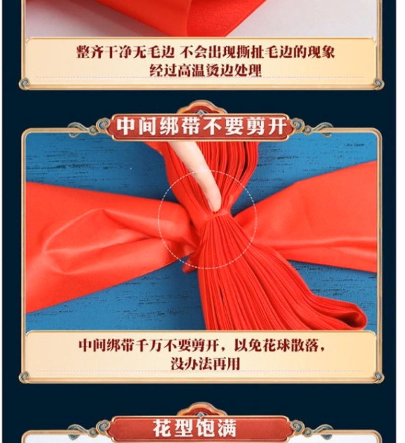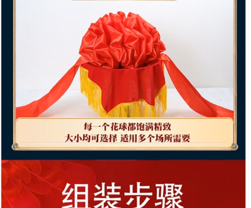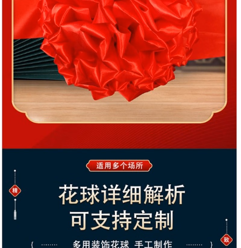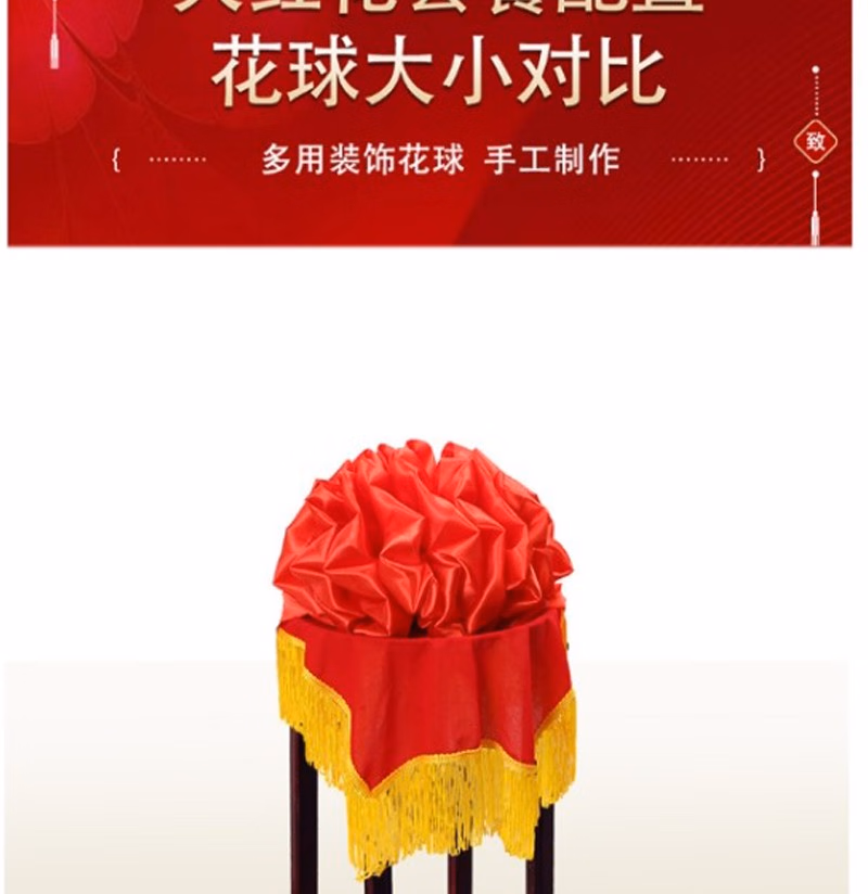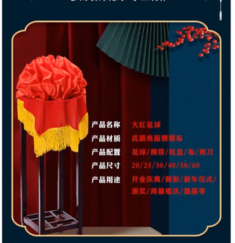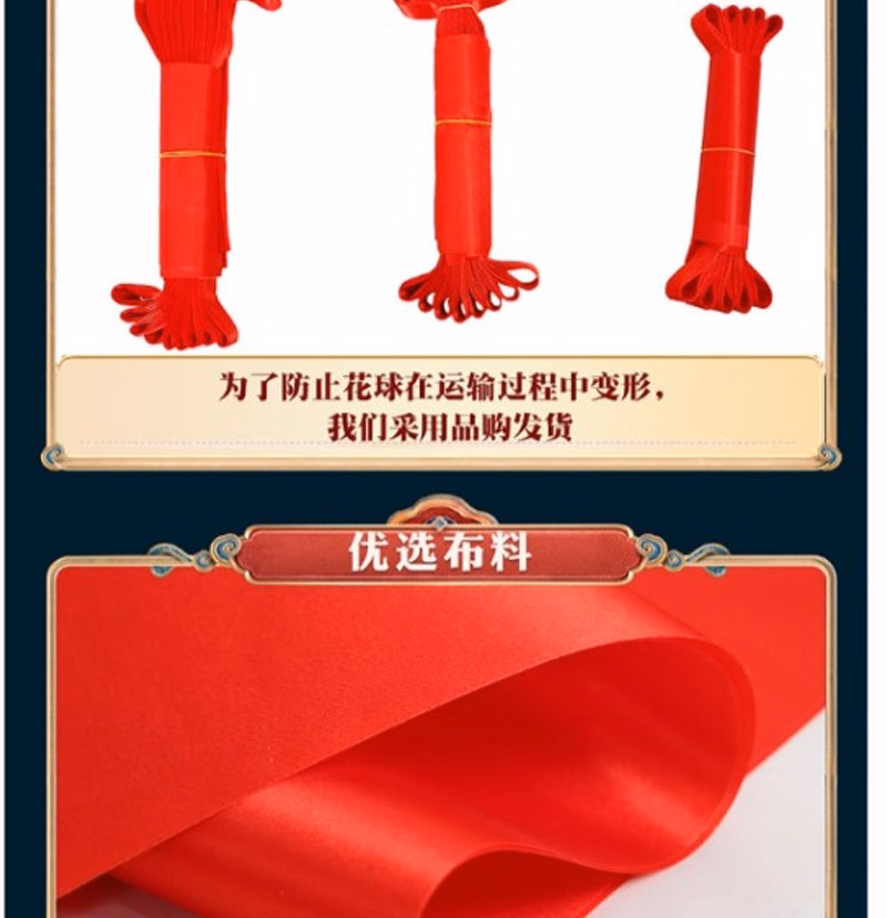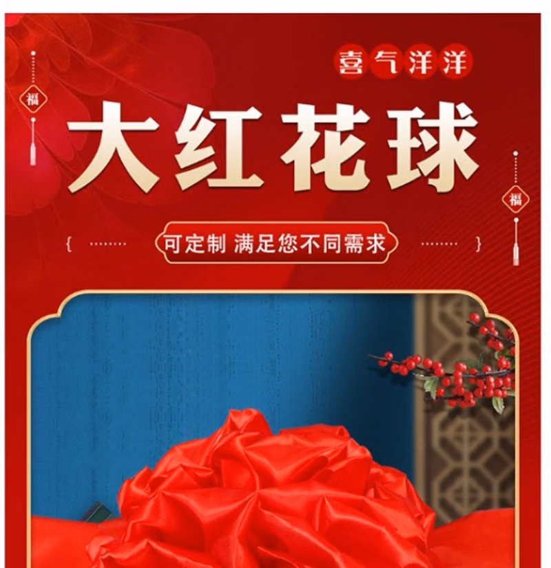 商品名称:晟泰邦 大红花球乔迁绸布结婚庆剪彩红绣球 直径25厘米立体花球(配总长2米飘带) 单位:套 2套起订