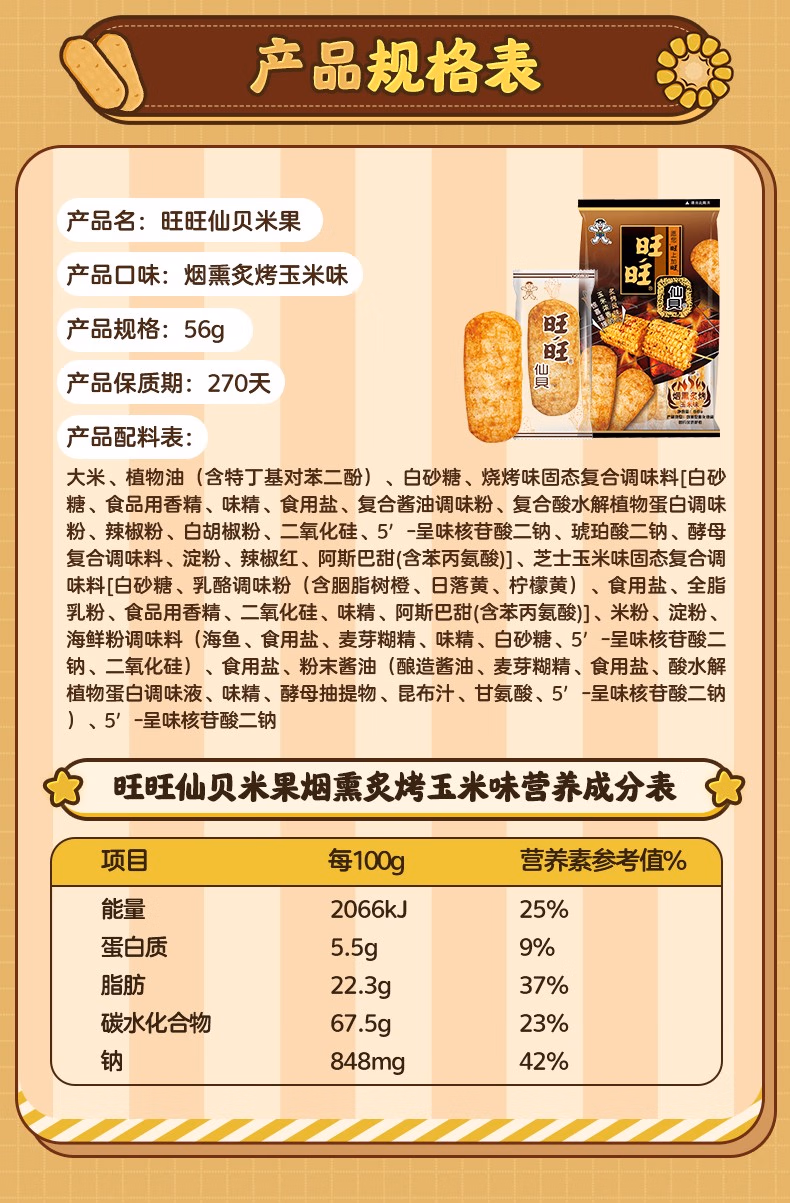 商品名称:旺旺-仙贝雪饼-玉米味-56g*2包/组
