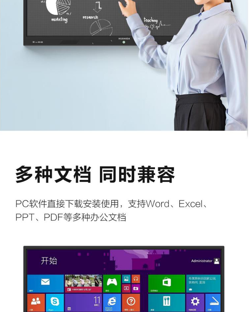 商品名称:互视达(HUSHIDA)-BGCM-55-电子白板-55英寸-Windows i3