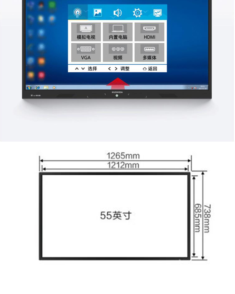 互视达(HUSHIDA)-BGCM-55-电子白板-55英寸-Windows i3